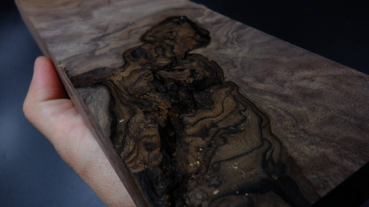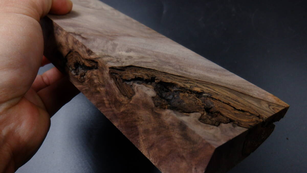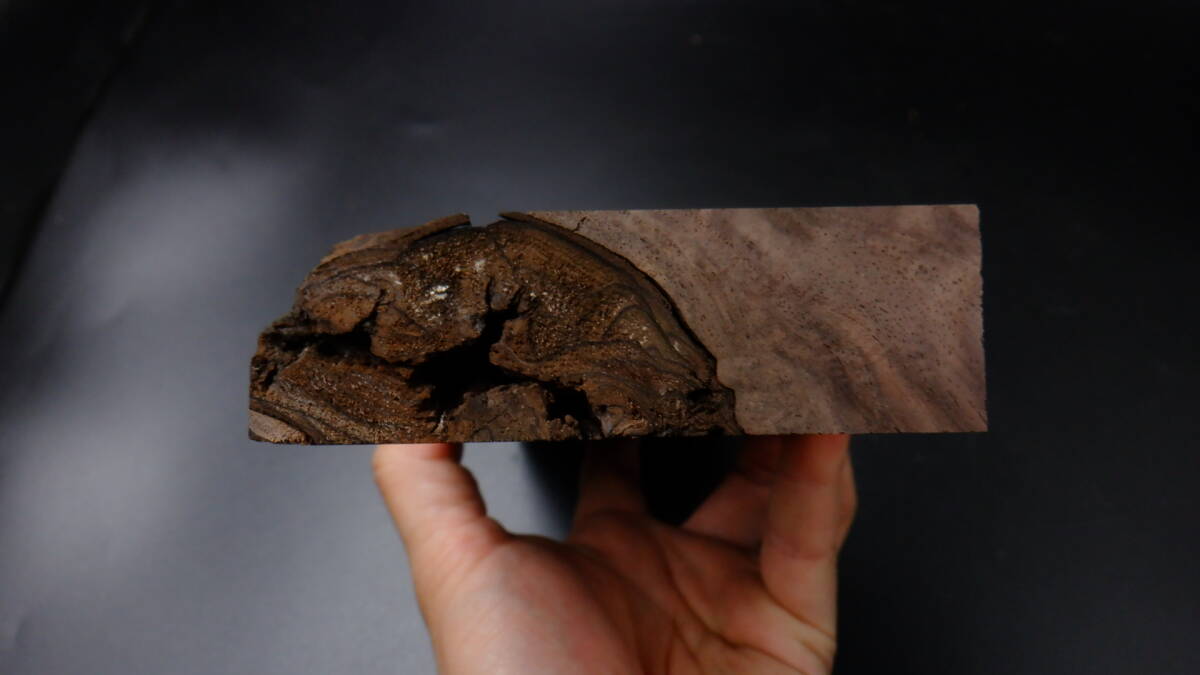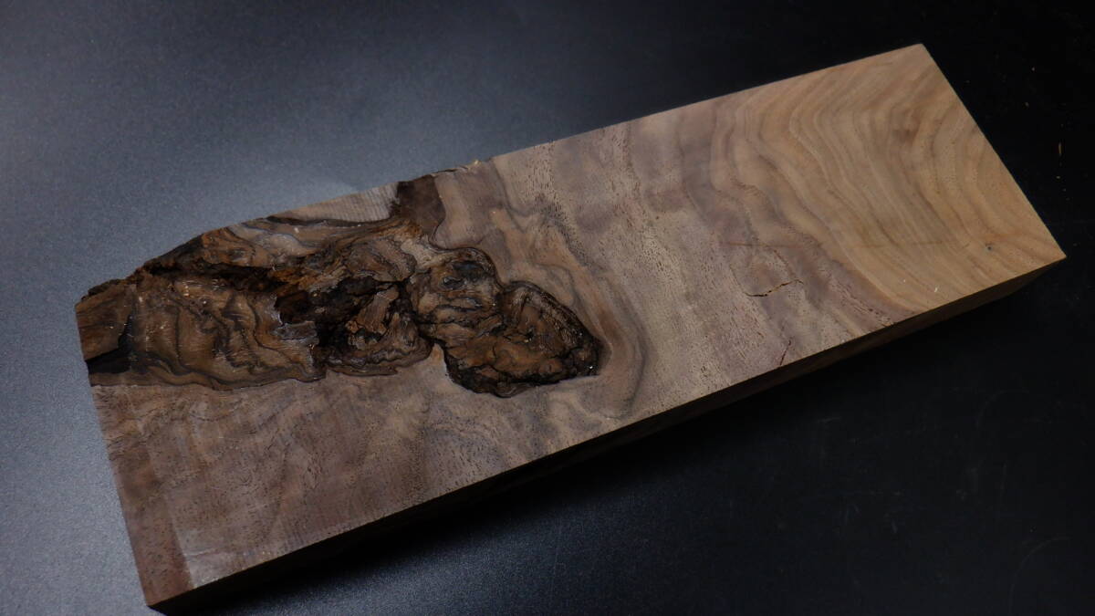 ★入皮入り!!!★ ウォールナット 厚約26mm,幅約82mm,長さ260mm diy 縮杢 ペンブランク ペンターニング 木材 生地 端材 花台 銘木 材木 no29