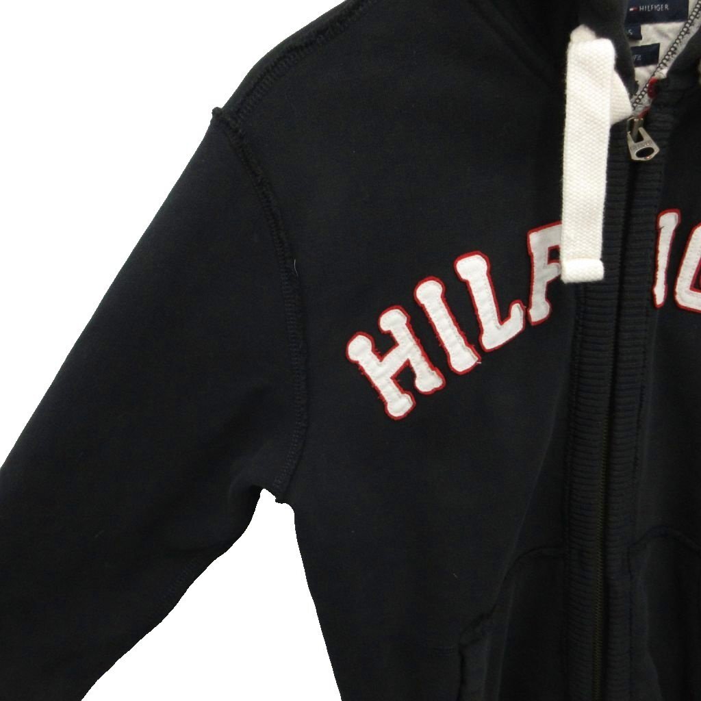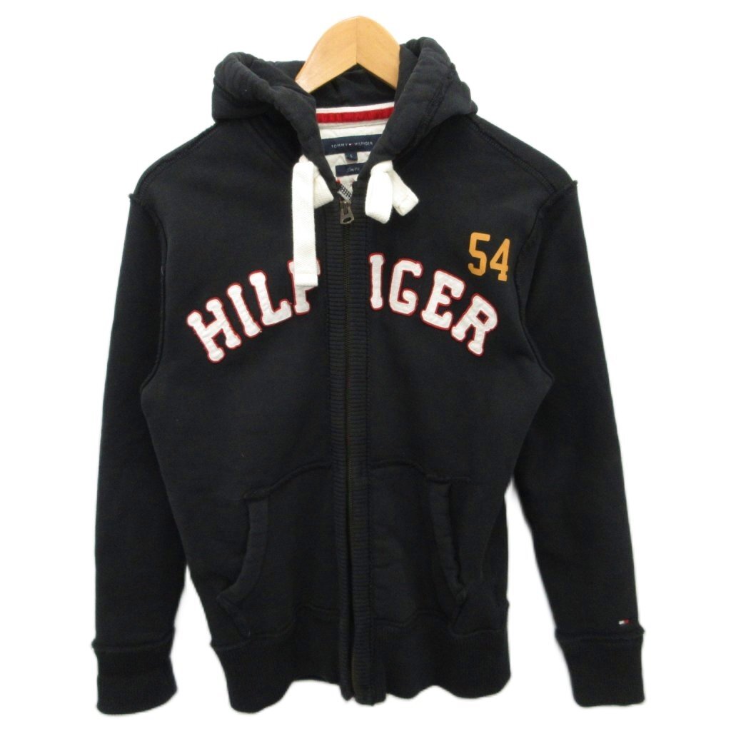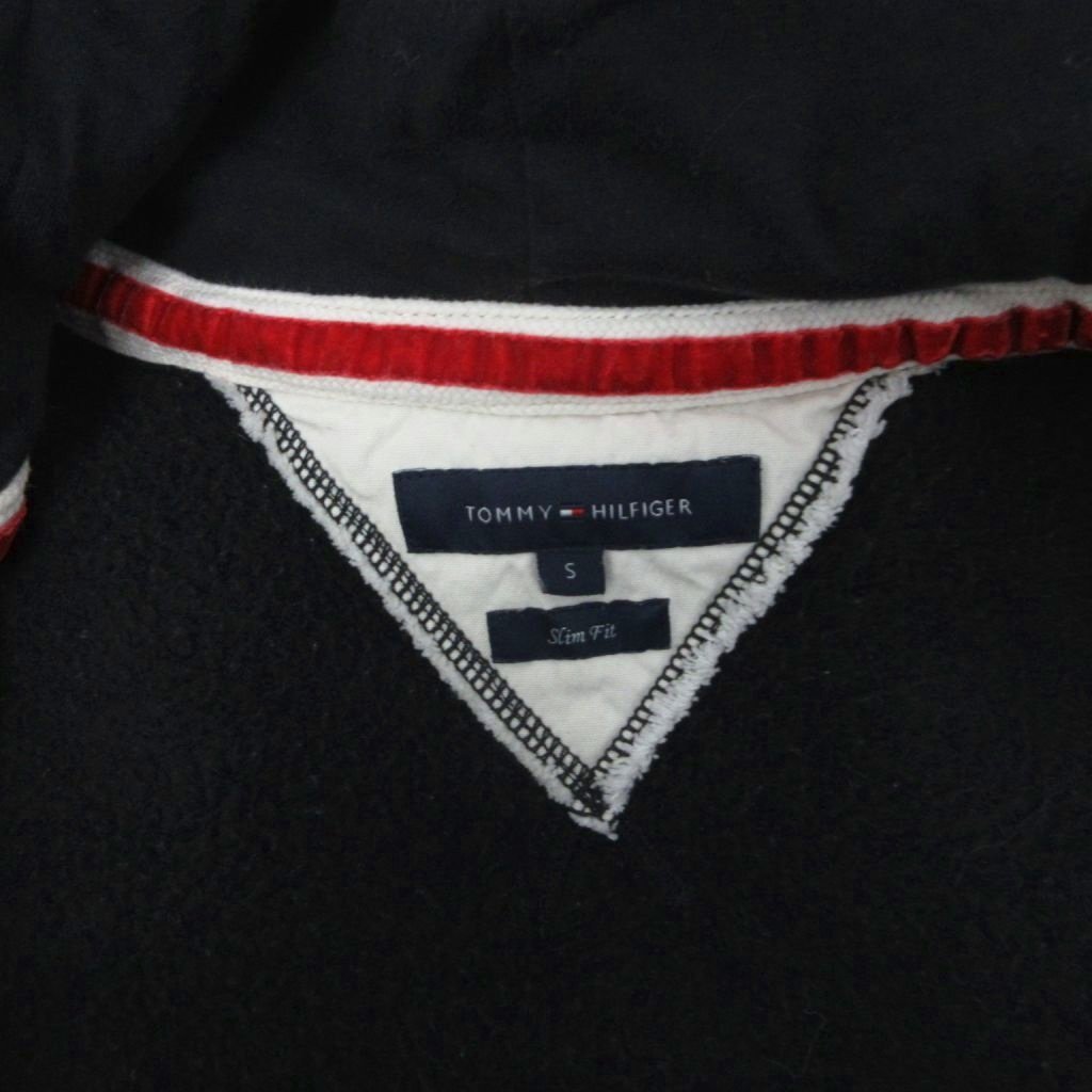 トミーヒルフィガー TOMMY HILFIGER Slim Fit ジップパーカー フーディー ジップアップ ロゴ ワッペン タイト S 黒 ブラック メンズ