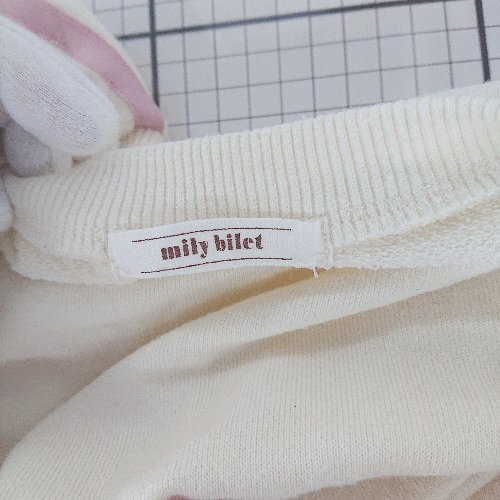 ◇ ⊆ mily bilet ミウィビレット ギャザー ロゴ 長袖 トレーナー サイズL クリーム系 レディース E