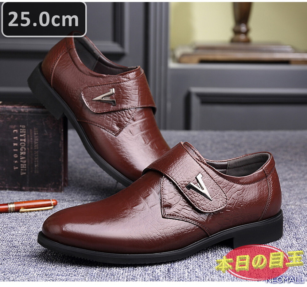 本日の目玉 ☆ メンズ ビジネス レザー シューズ ブラウン サイズ 25.0cm 革靴 靴 カジュアル 屈曲性 通勤 軽量 【433】