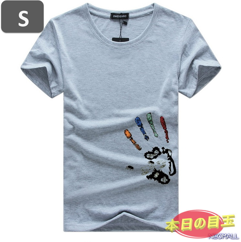 本日のお買得 ☆ 丸首 半袖 Tシャツ【457】 グレー Sサイズ トップス シャツ シンプル イラスト デザイン 春夏