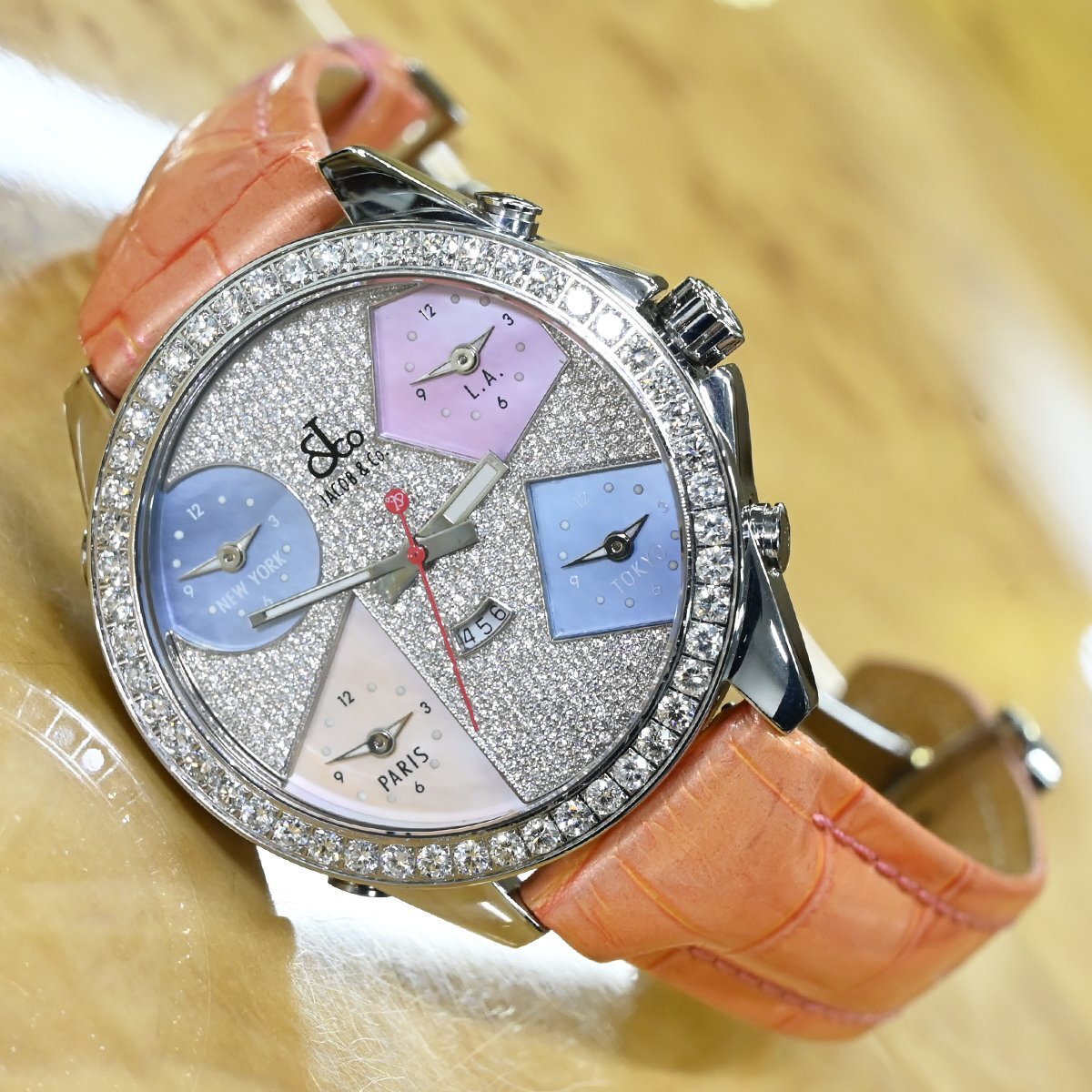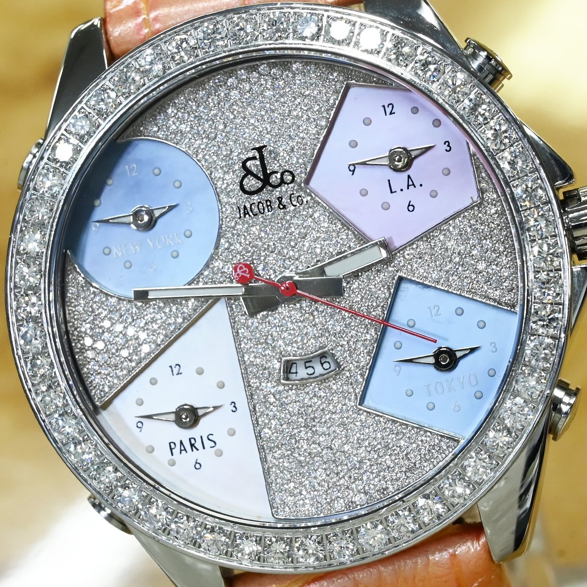 ジェイコブの純正ダイヤ文字盤&ラージダイヤベゼル 5タイムゾーン 47MMです。 メゾンを象徴するアイコンウォッチ、『5タイムゾーン』 多彩なモデル展開の中でもこちらは純正セッティングの最高級ダイヤモンドをベゼルから文字盤に至るまでセッティングした存在感溢れる一本。 市場でも圧倒的な人気を誇るモデルなのでお探しの方も非常に多いかと思います。 ※全ムーブ基本動作確認済。 |