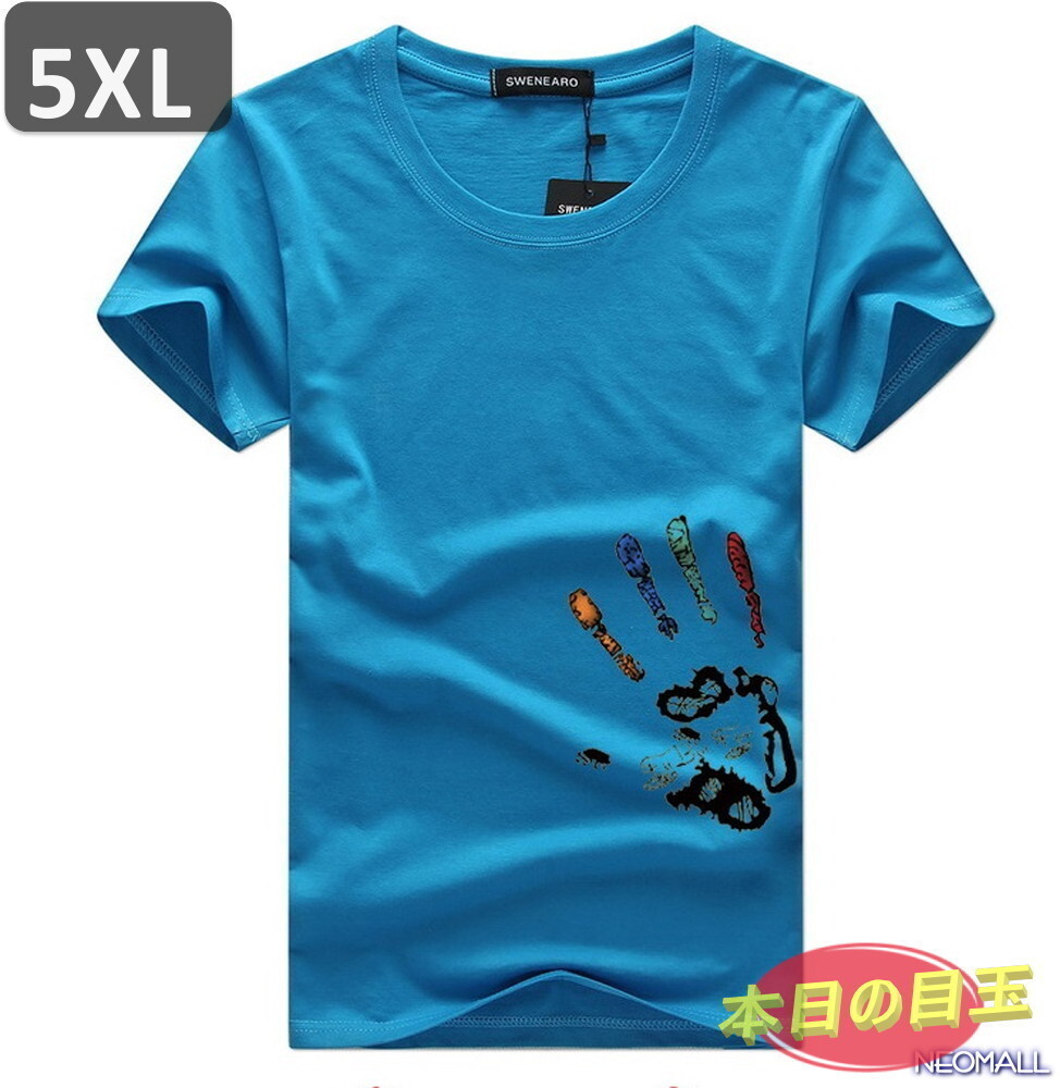 本日のお買得 ☆ 丸首 半袖 Tシャツ【457】 ブルー 5XLサイズ トップス シャツ シンプル イラスト デザイン 春夏