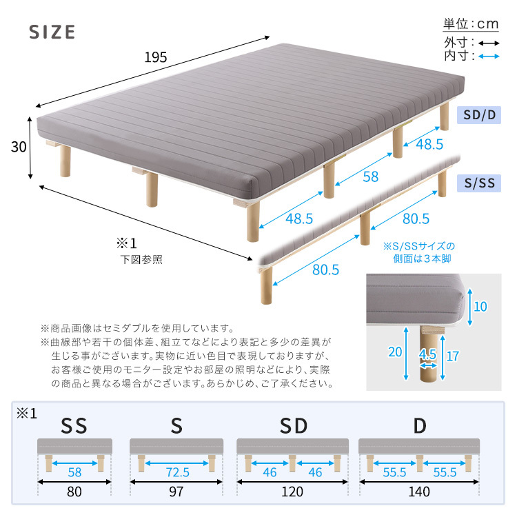 ベッドとマットレスの一体型!ウレタン脚付きマットレスSサイズ!