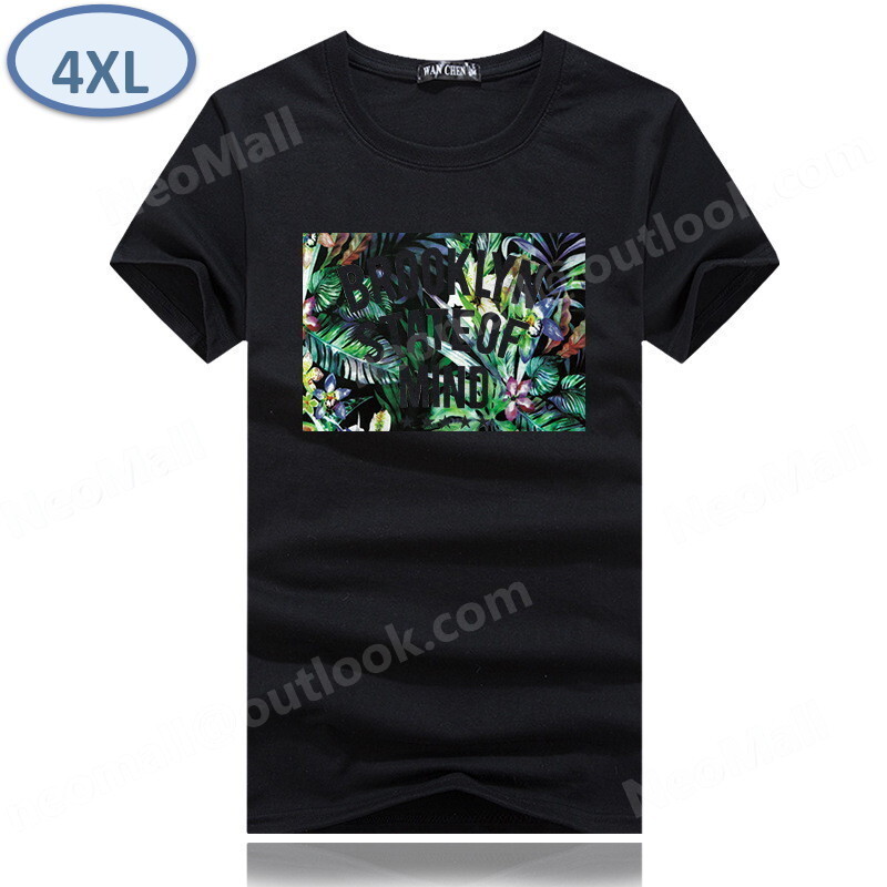 夏にピッタリ ☆ 丸首 半袖 Tシャツ【074】 ブラック 4XLサイズ トップス シャツ シンプル イラスト プリント 春夏