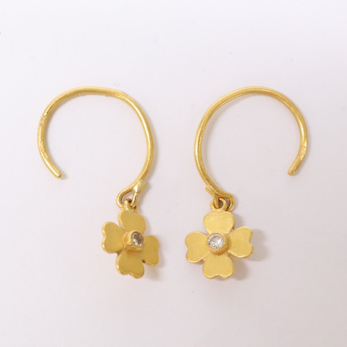 商品名 マリーエレーヌドゥタイヤック 22K 0.04ct ダイヤモンド プレシャスクローバー フープピアス