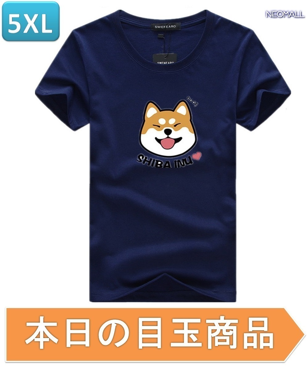 本日のお買得 ☆ 丸首 半袖 Tシャツ【345】 ネイビー 5XLサイズ トップス シャツ シンプル イラスト シルエット 春夏