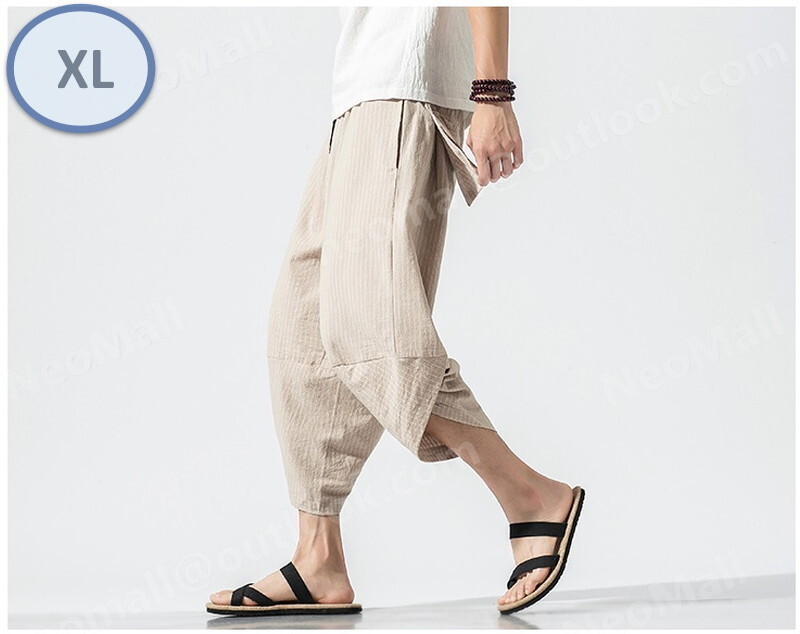 お買い得☆メンズ サルエルパンツ ベージュ XL カジュアル ヒップホップ 7分丈 スウェット 無地 ポケット付 オールシーズン【063】