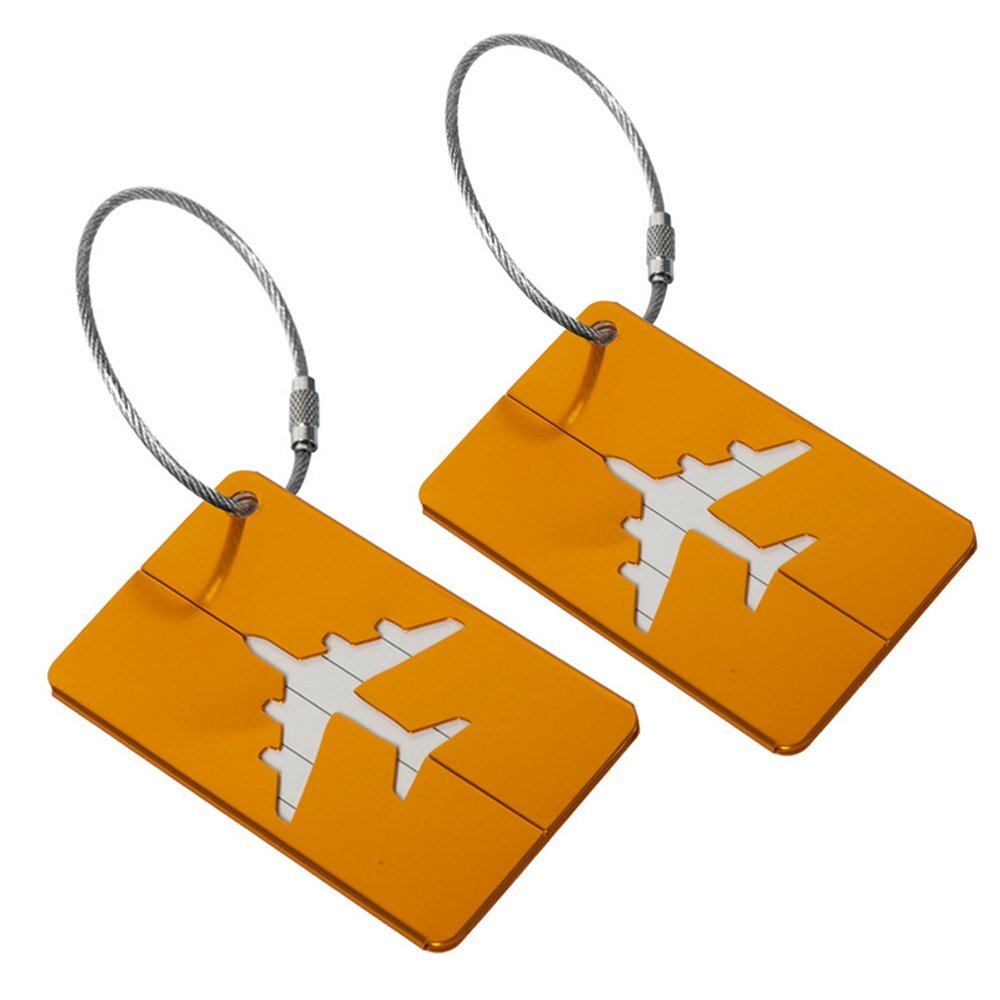 ◆アルミスーツケースタグ 2枚セット トラベルネームタグ 荷物タグ ラゲッジタグ 紛失防止 目印 海外旅行 出張 キャリーケース ネームホルダー 旅行タグ 【ゴールド2枚】APKH02S