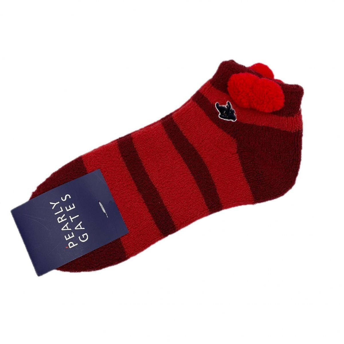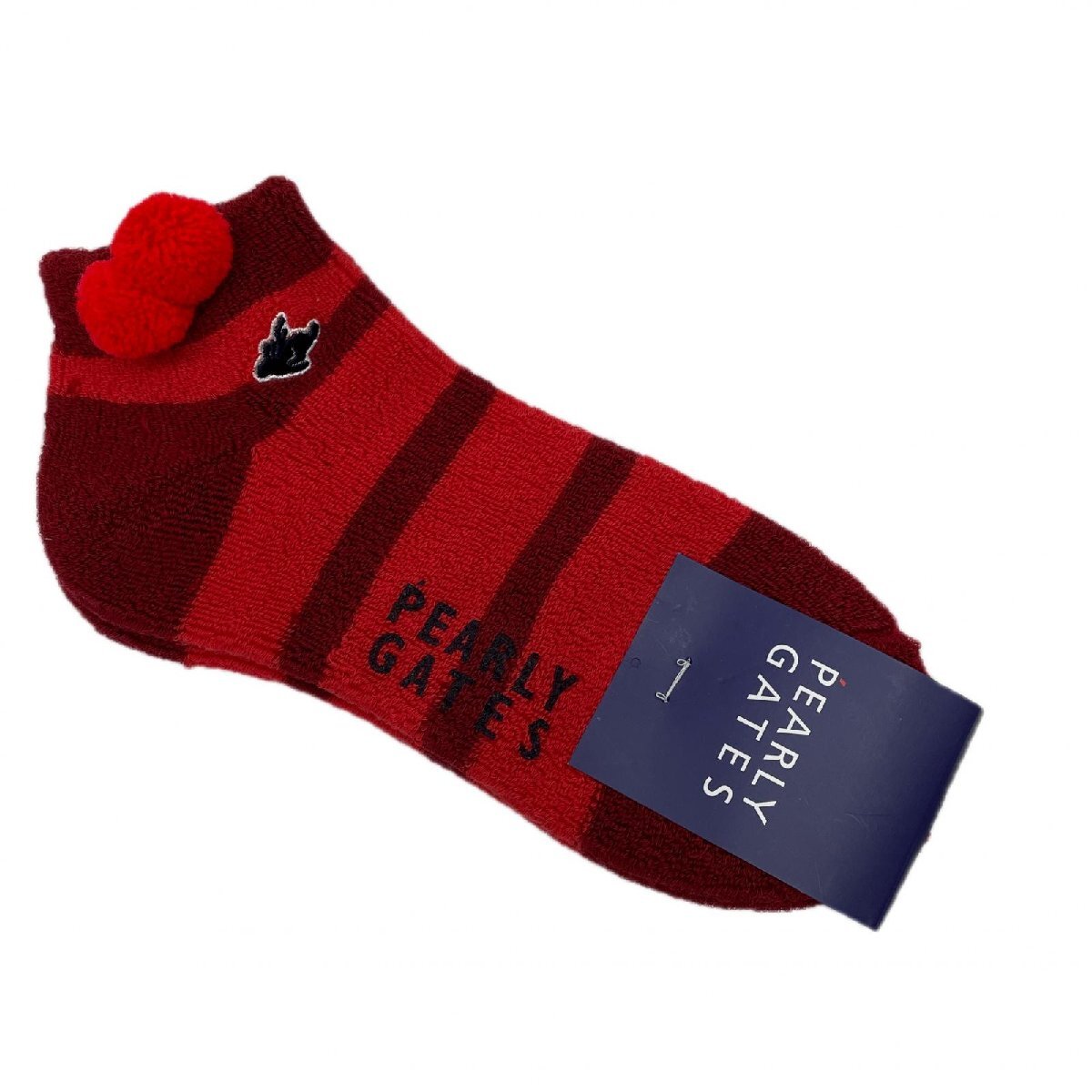 coco 未使用品 パーリーゲイツ PEARLY GATES レディース ソックス レッド系 アンクル丈 ポンポン付き ボーダー ネコポス発送可 K022348
