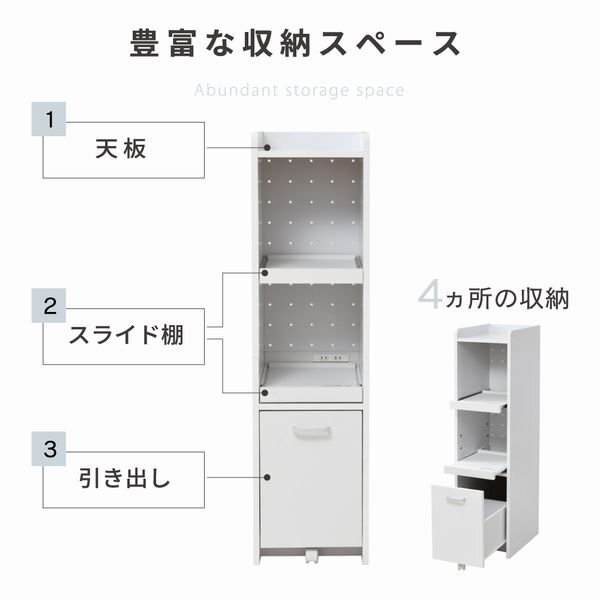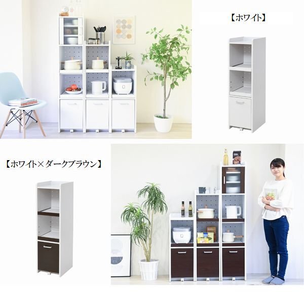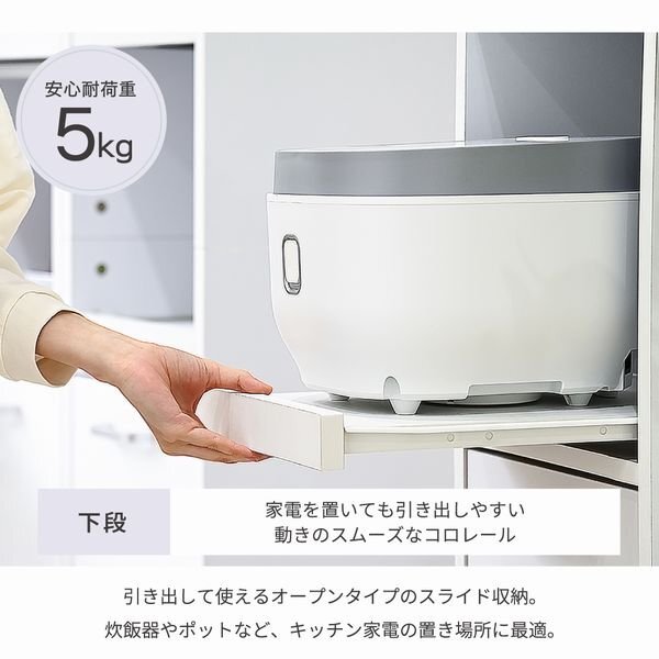 隙間タイプのキッチン収納。 ちょっとした隙間や収納スペースにお困りの方にぴったりな、スリムタイプの家電収納家具。 家電が2台収納できる、高さ120cm |