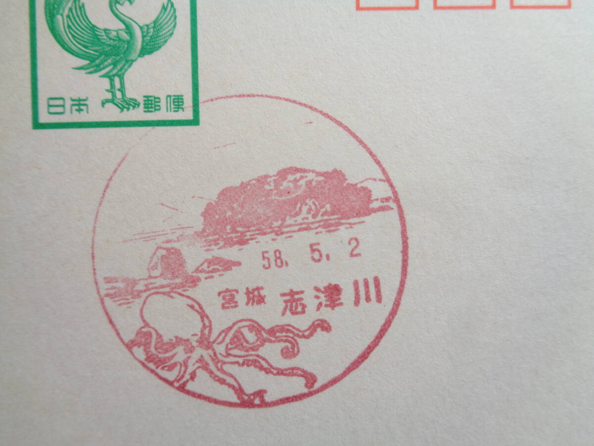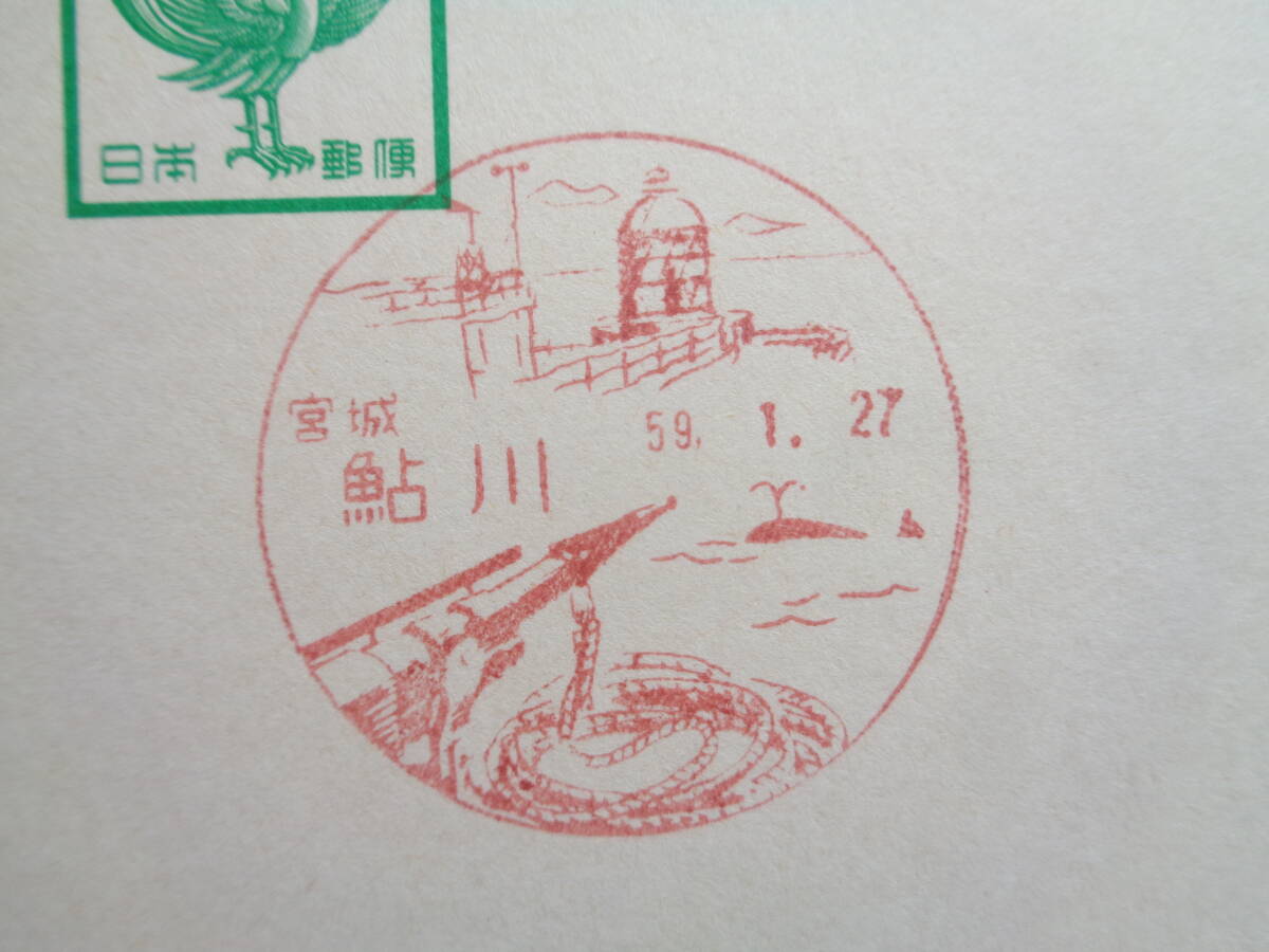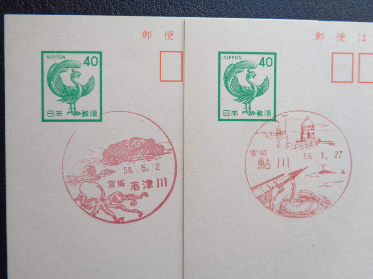 鳳凰はがき    初日印/風景印    宮城県2枚     鮎川/S59.1.27    志津川/S58.5.2