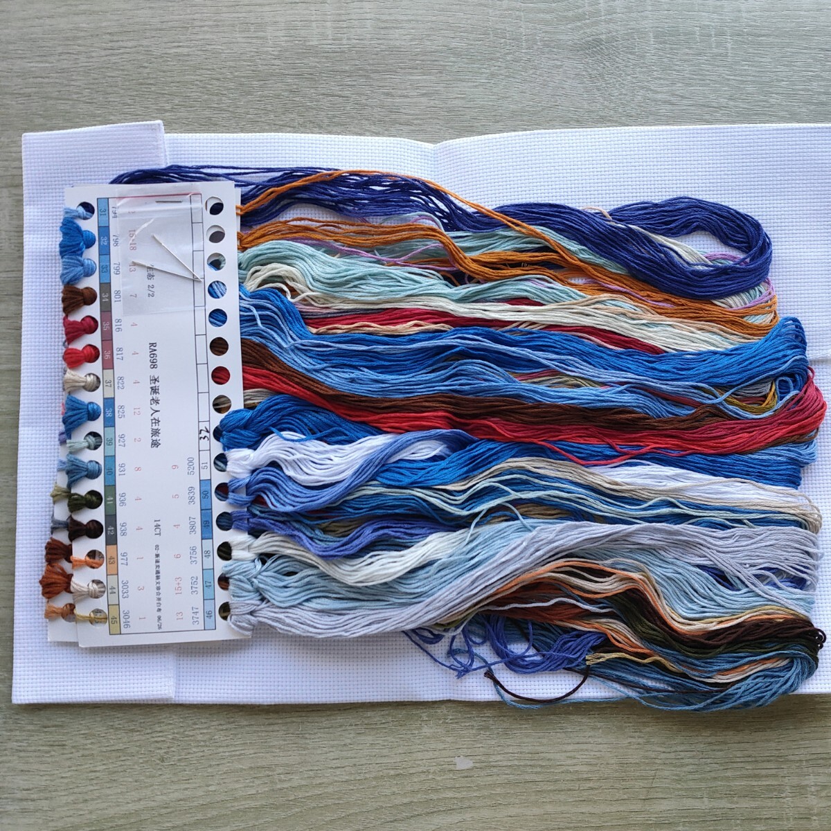 刺繍糸は余分に見積もって入っていますが、製作中もし足りなくなった場合は、ご自身でご用意ください。DMCの糸番号に対応しています。検品のため1度開封しています。