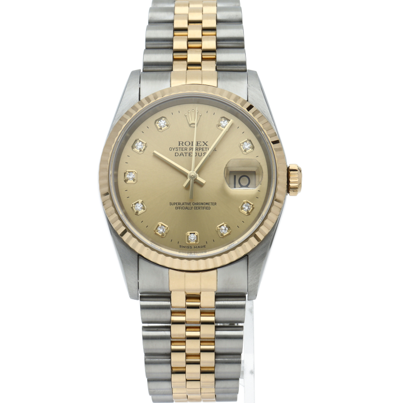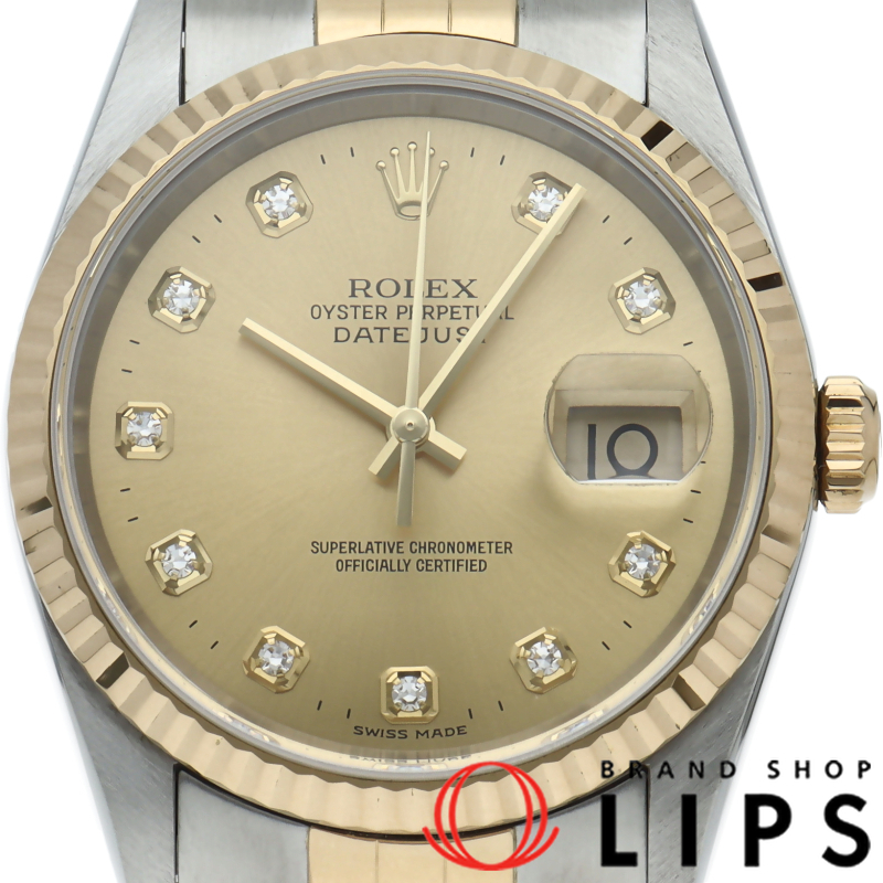 ロレックス デイトジャスト メンズ時計 10Pダイヤ 16233G(K) 箱 保証書 K18YG/SS メンズ時計 シャンパンカラ