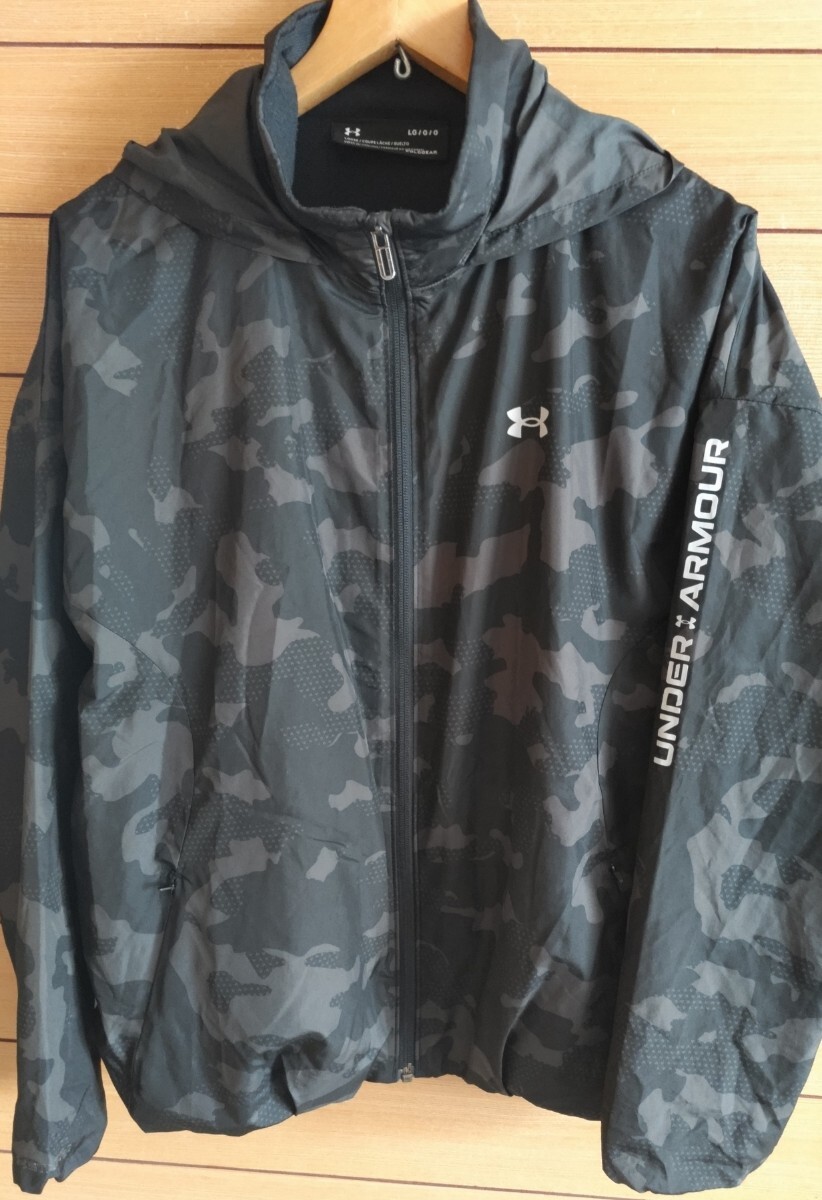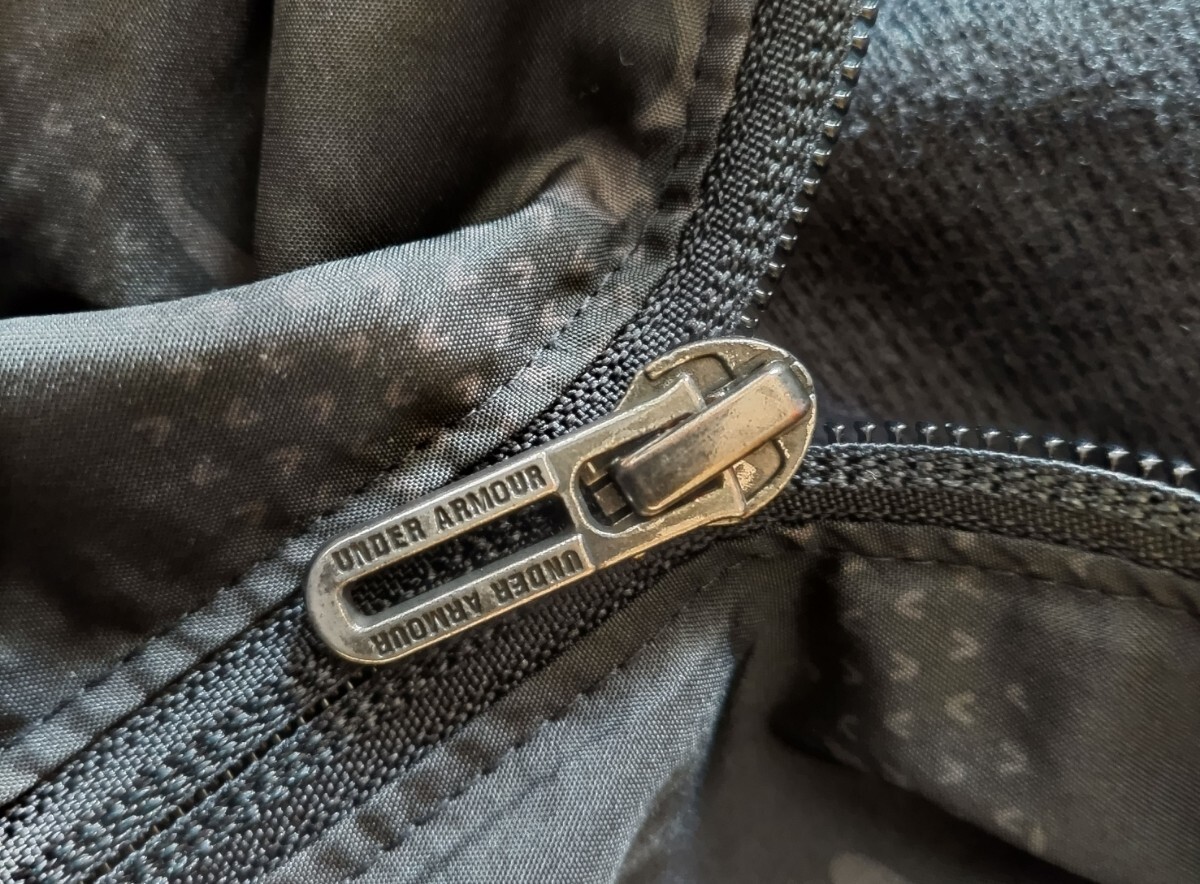 ポケットにファスナーがあります。 身幅は60cm、着丈は63cmです。