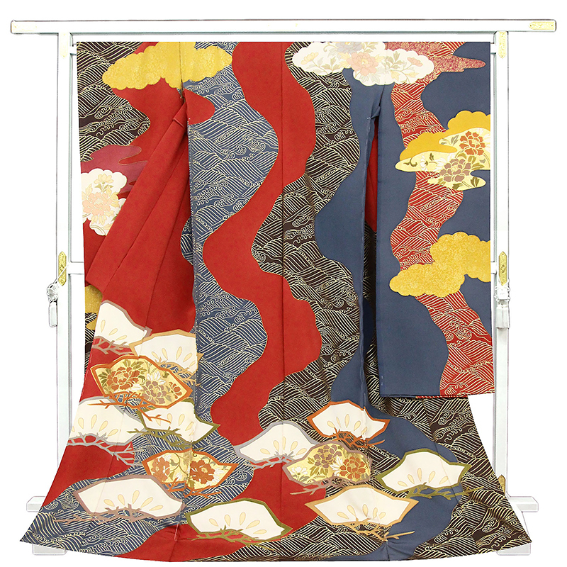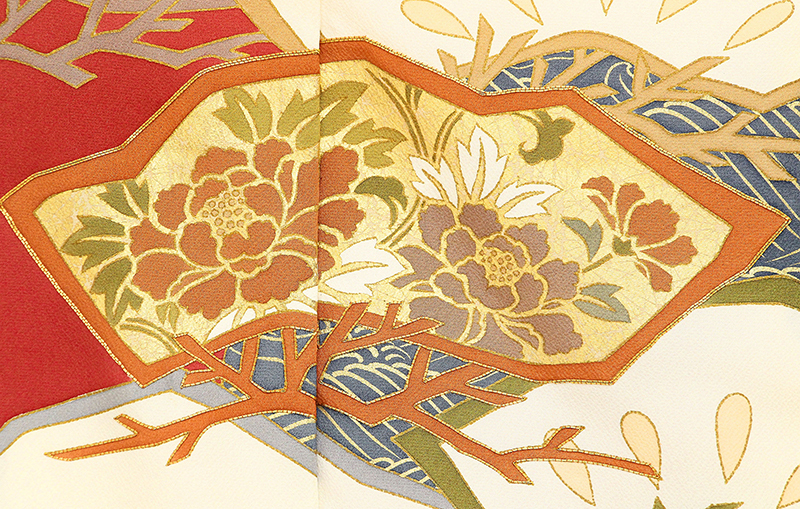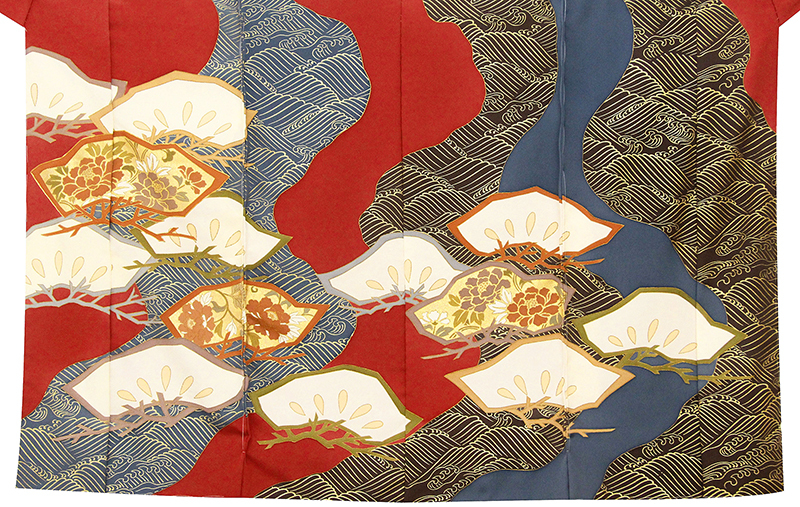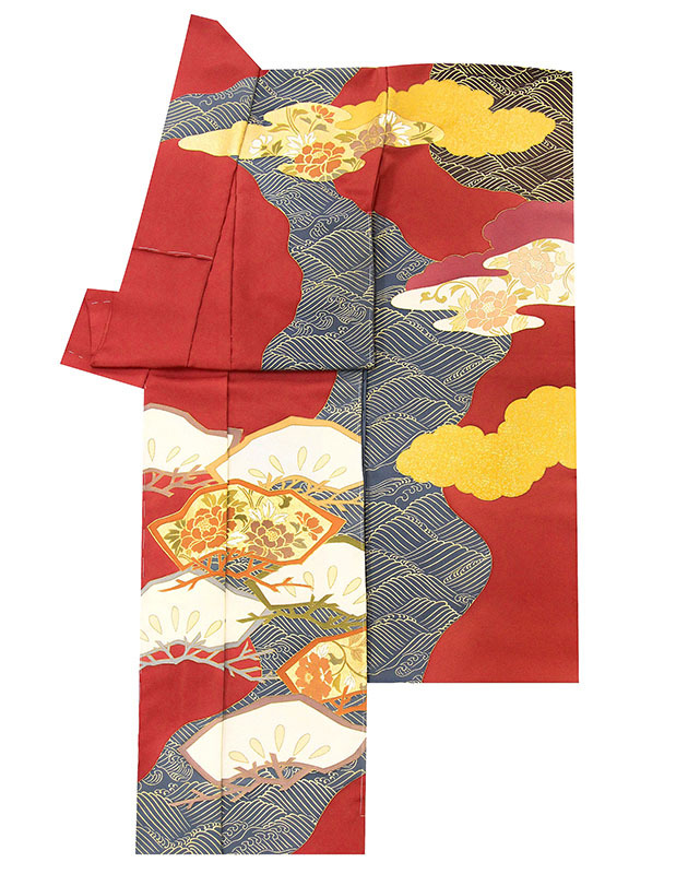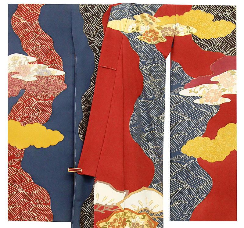 | ★品質・詳細 | ○地色 【こちらの地色は古典の黄赤地、灰青、白ベージュ地の多色染です。】 ○絹織物 ○新品・未仕立の特撰振袖の仮絵羽です。 ○参考上代 880,000円 |