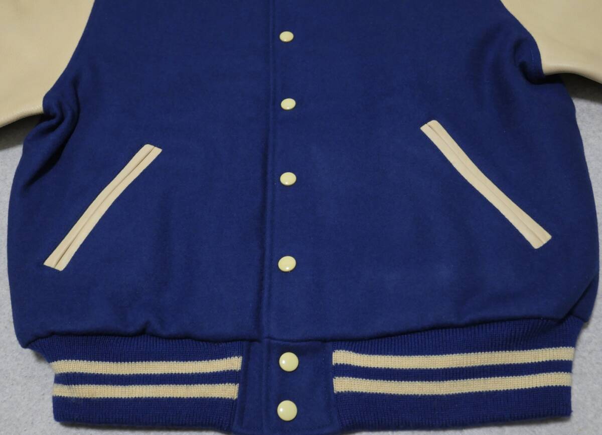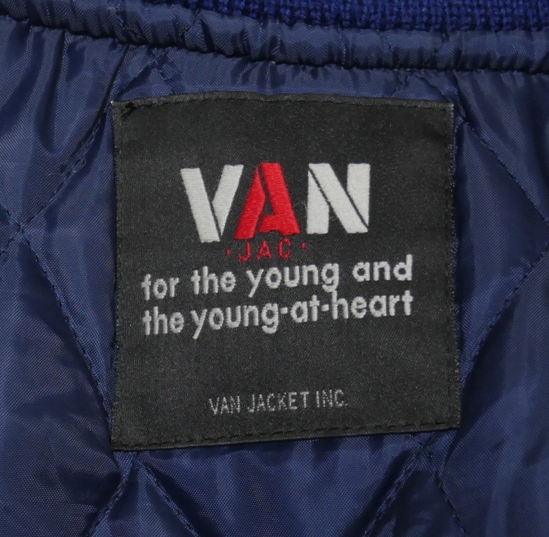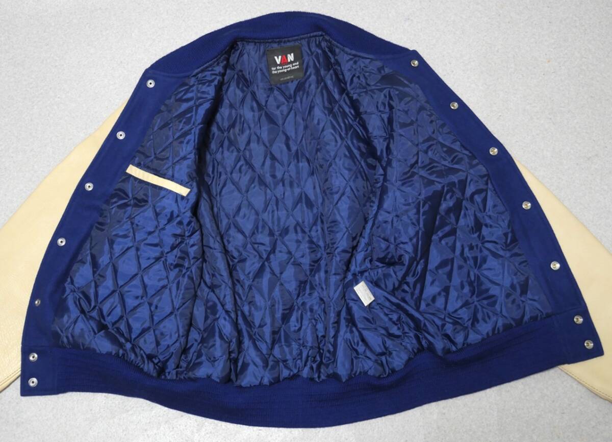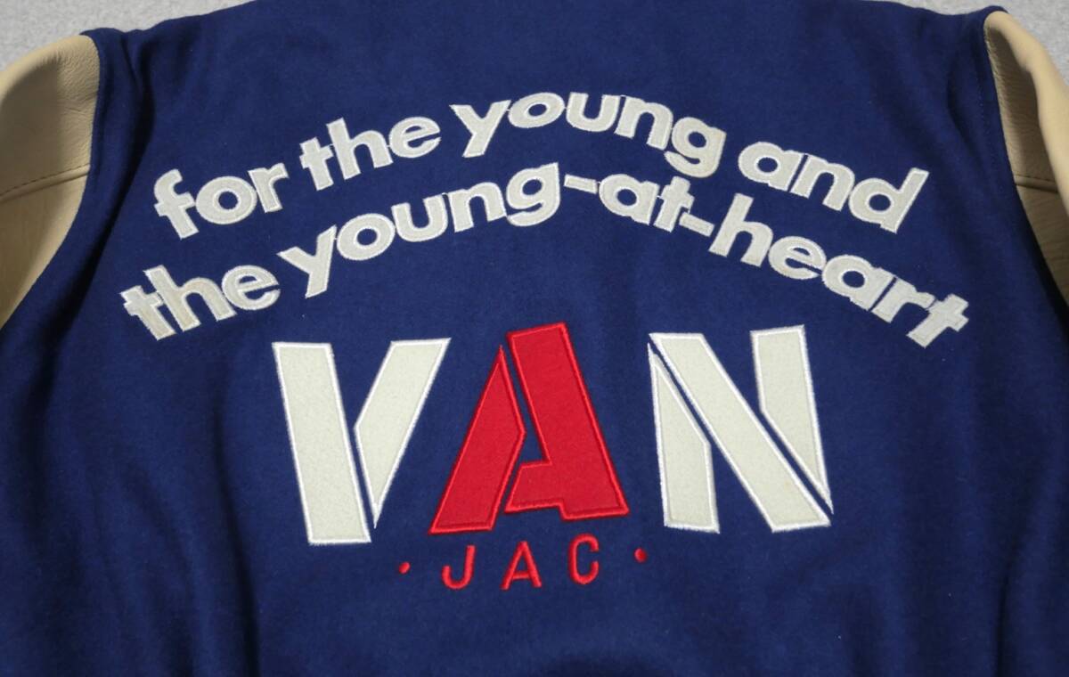 VAN JAC アーチロゴ 袖革 スタジャン 青 LL 袖レザー ヴァンヂャケット