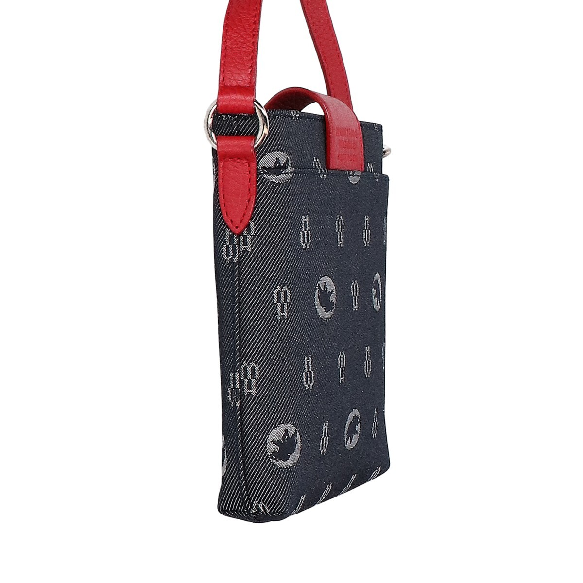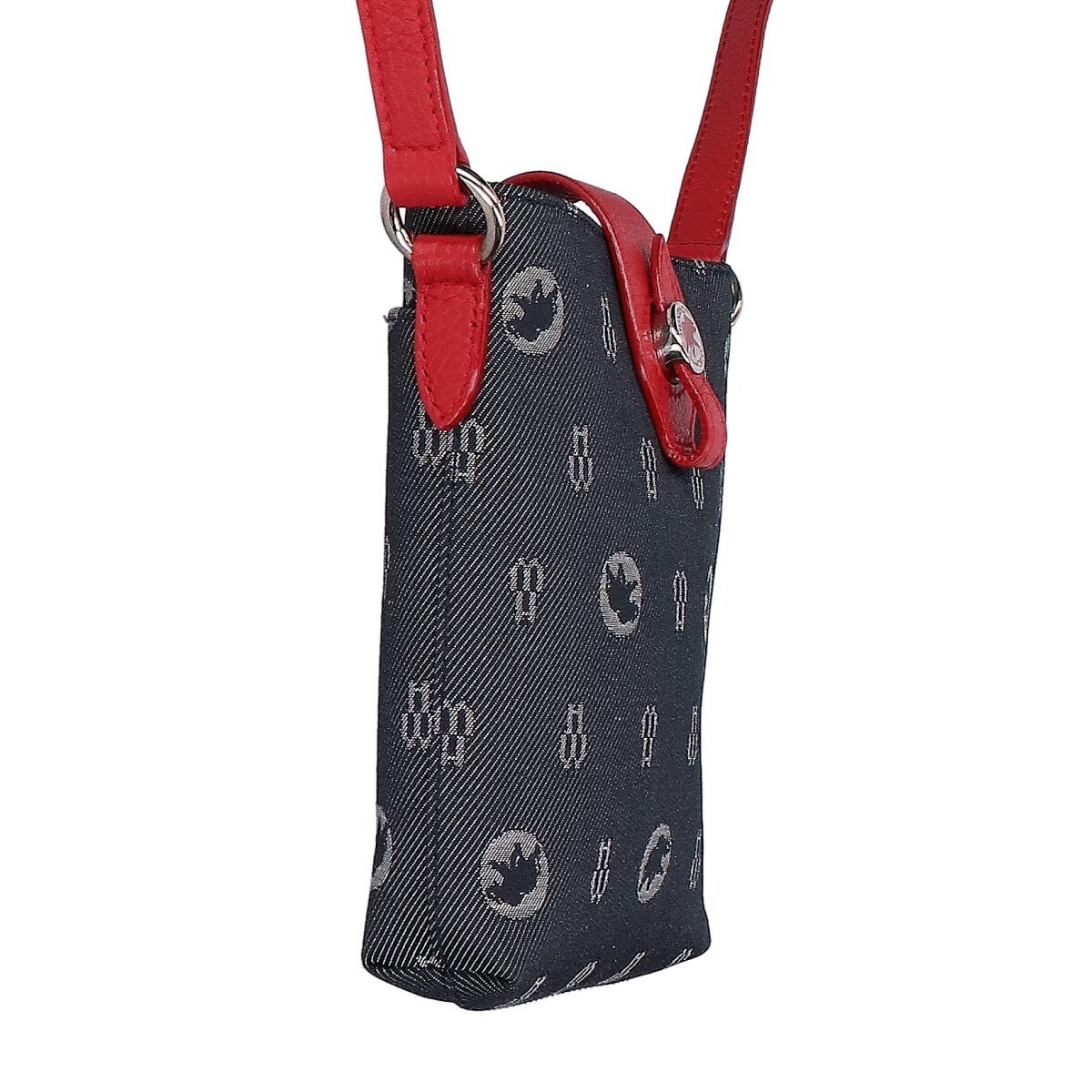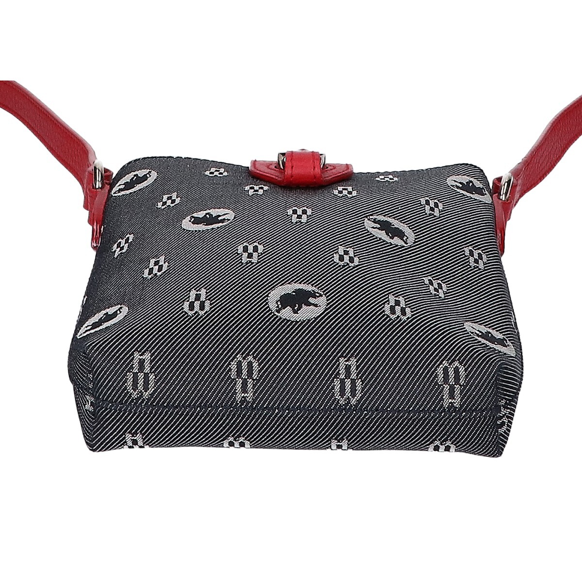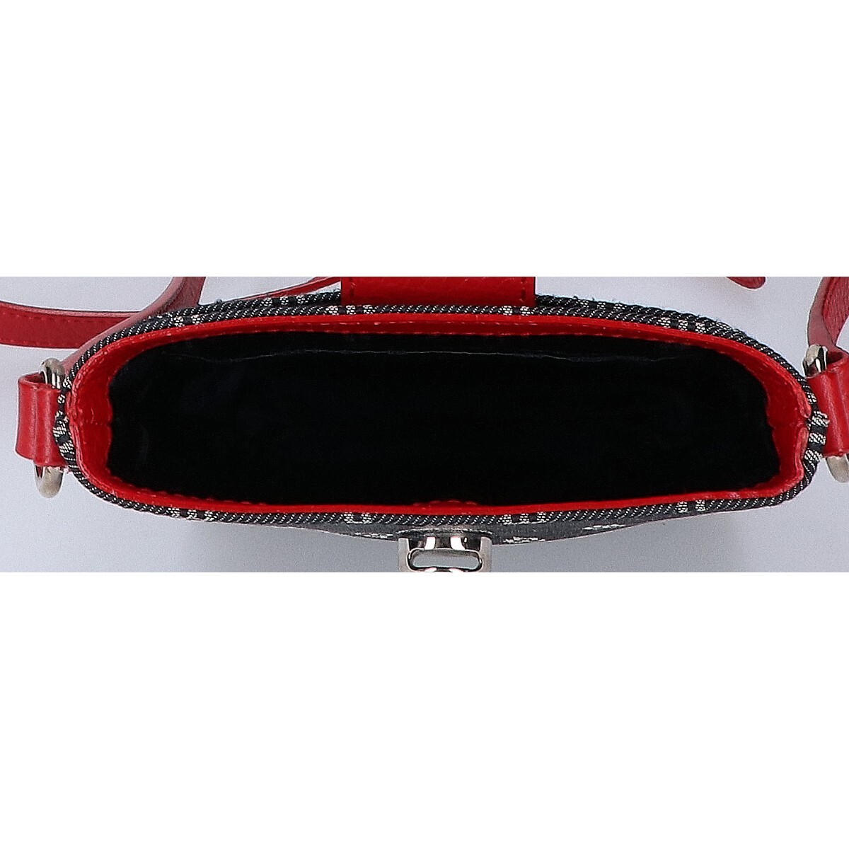 美品/ HUNTING WORLD ハンティングワールド 総ロゴ キャンバスxレザー ショルダーバッグ ブラック/レッド レディース