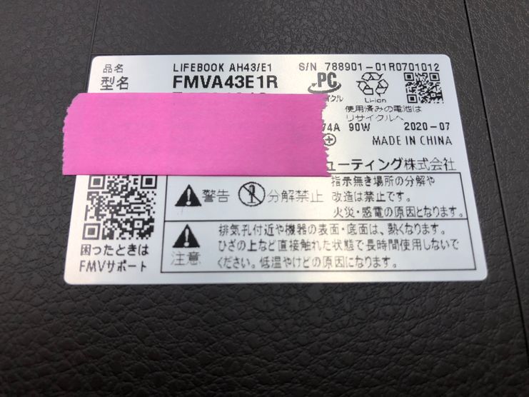 【記憶媒体無】FUJITSU/ノート/AMD Ryzen 3 3300Uメモリ4GB/4GB/WEBカメラ有/OS無