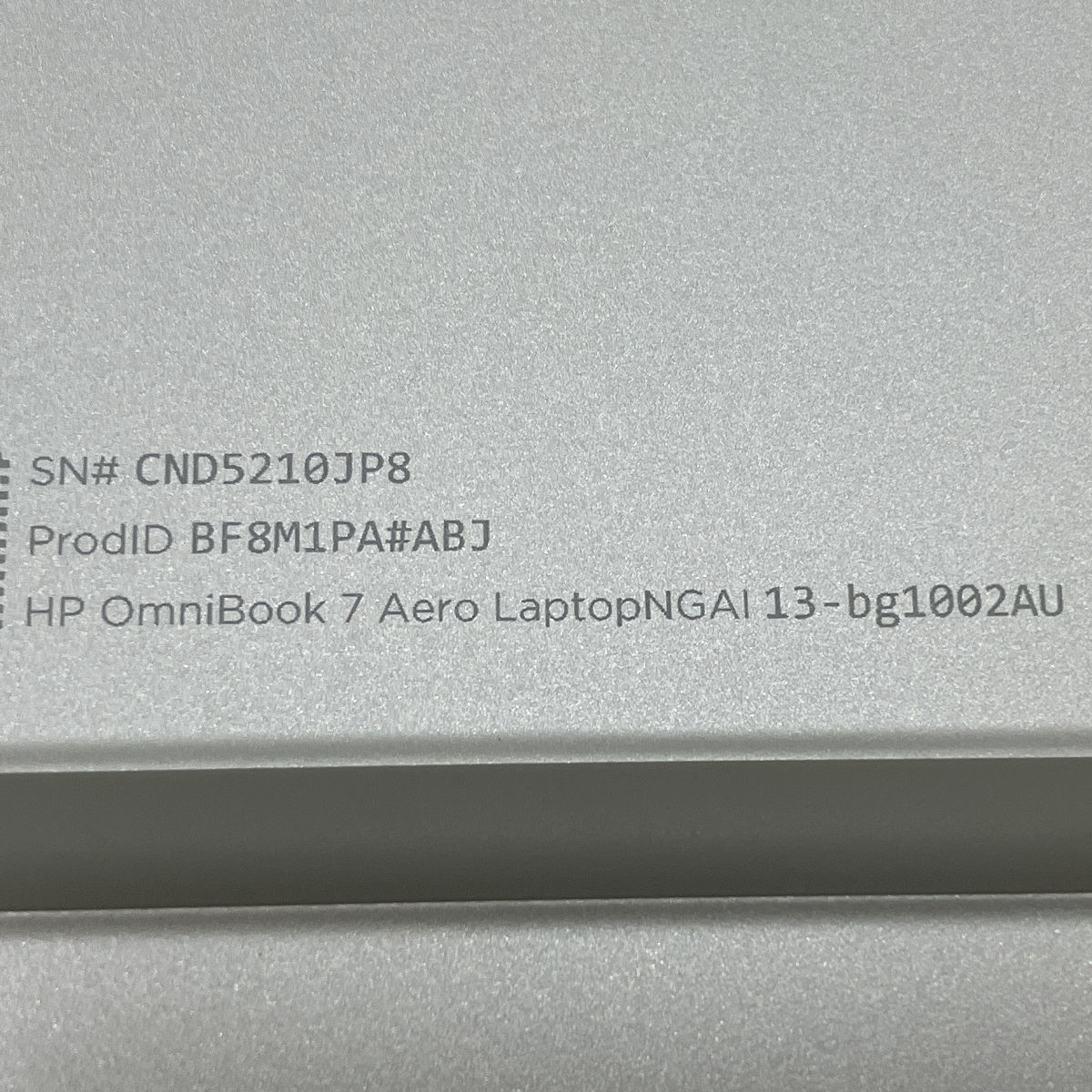 | シリーズ | HP OmniBook 7 Aero Laptop 13-bg1002AU | シリアル | CND5210JP8 |