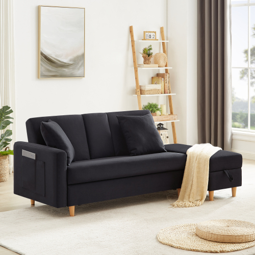 • 【ソファ,オットマンは大量収納空間付き】布団、オモチャなどの生活用品を簡単に収納できます。肘掛けにも収納袋付き、雑誌、スマホやリモコンなどの小物を収できます。