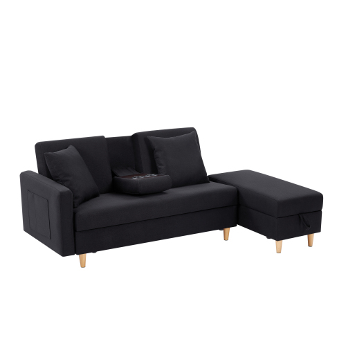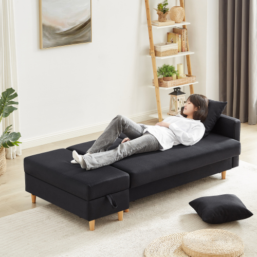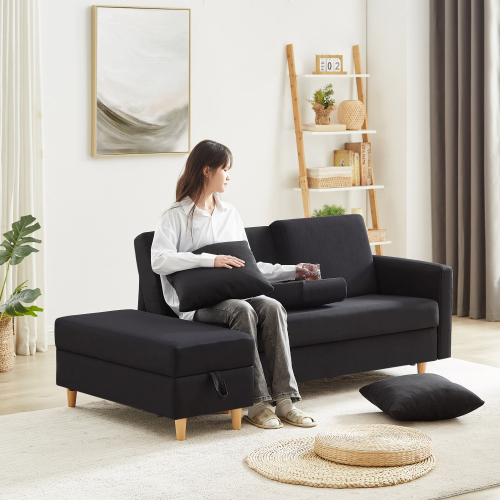 ソファ ソファーベッド カウチソファ 3人掛け オットマン付き 多機能ソファ 左右側とも取り付けるアームレスト たくさん収納