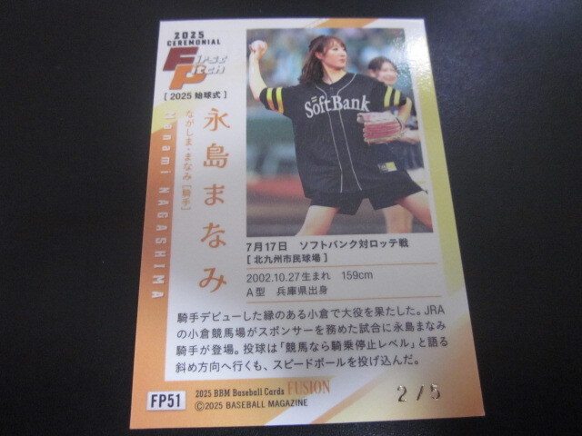BBM 2025 FUSION ★ 永島まなみ ★ 始球式カード 銀紙版 直筆サイン 2/5 5枚限定 騎手 ソフトバンク VS ロッテ