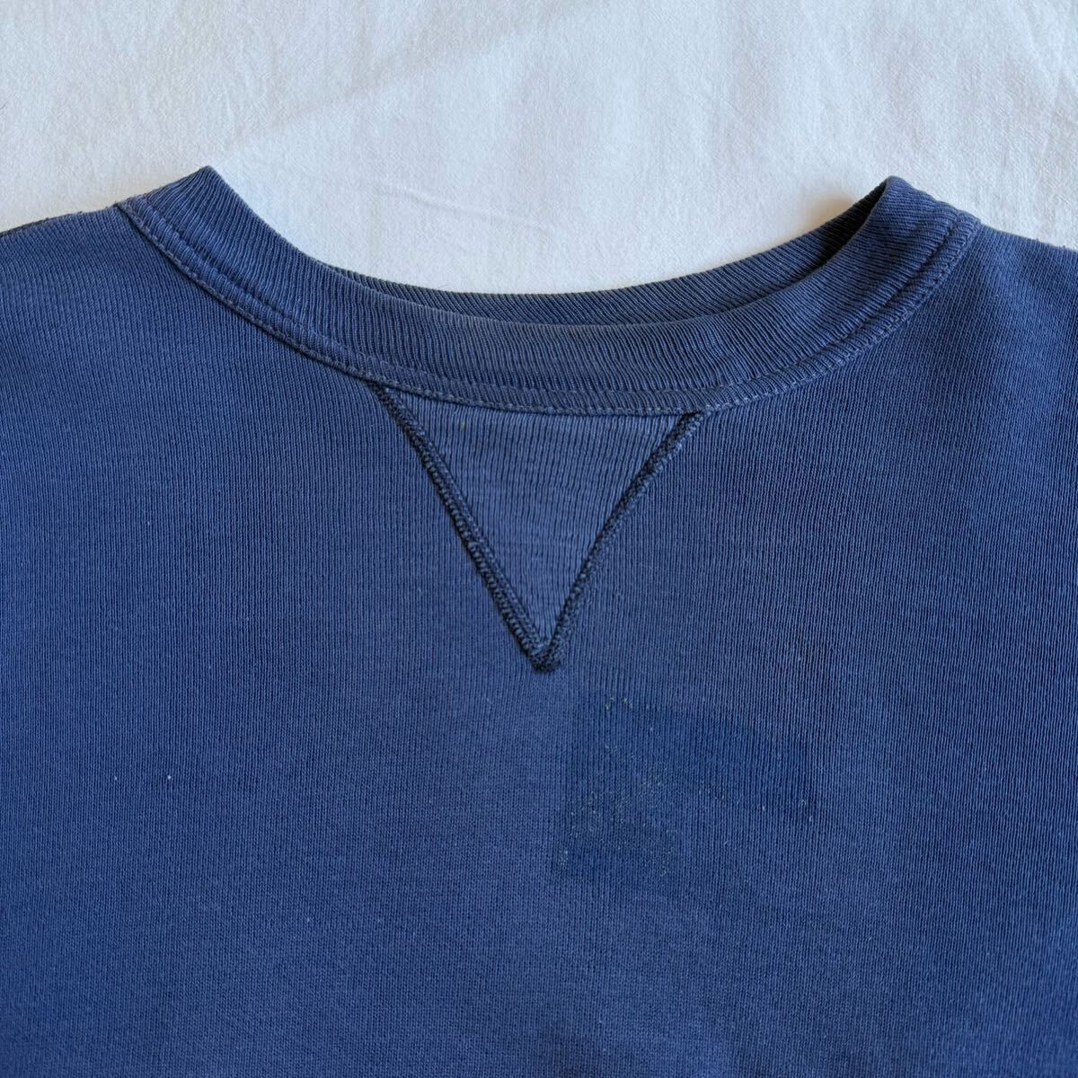 綿100でややフェードしたブルーネイビーカラーで、ヴィンテージらしく使いやすい1枚。