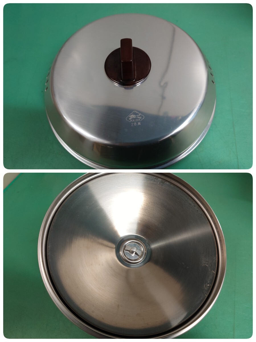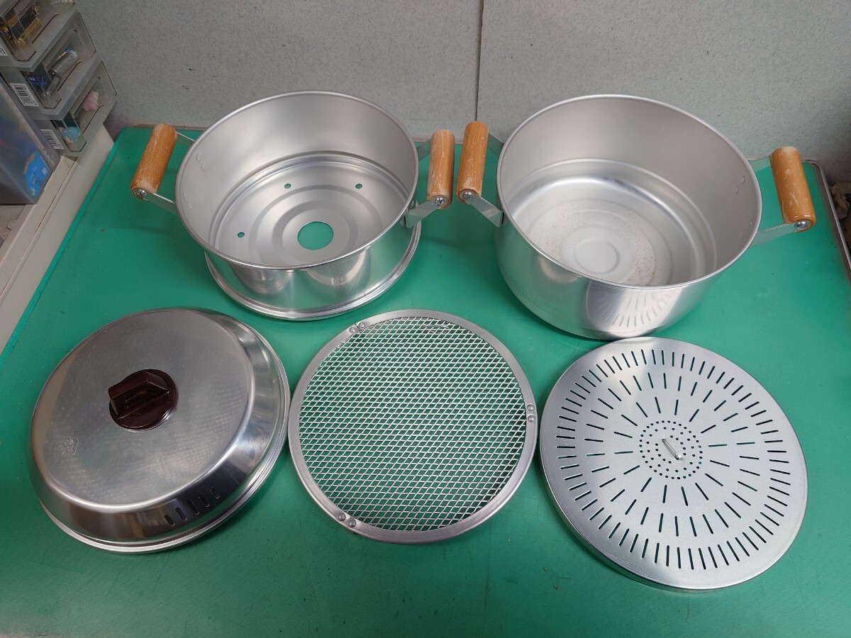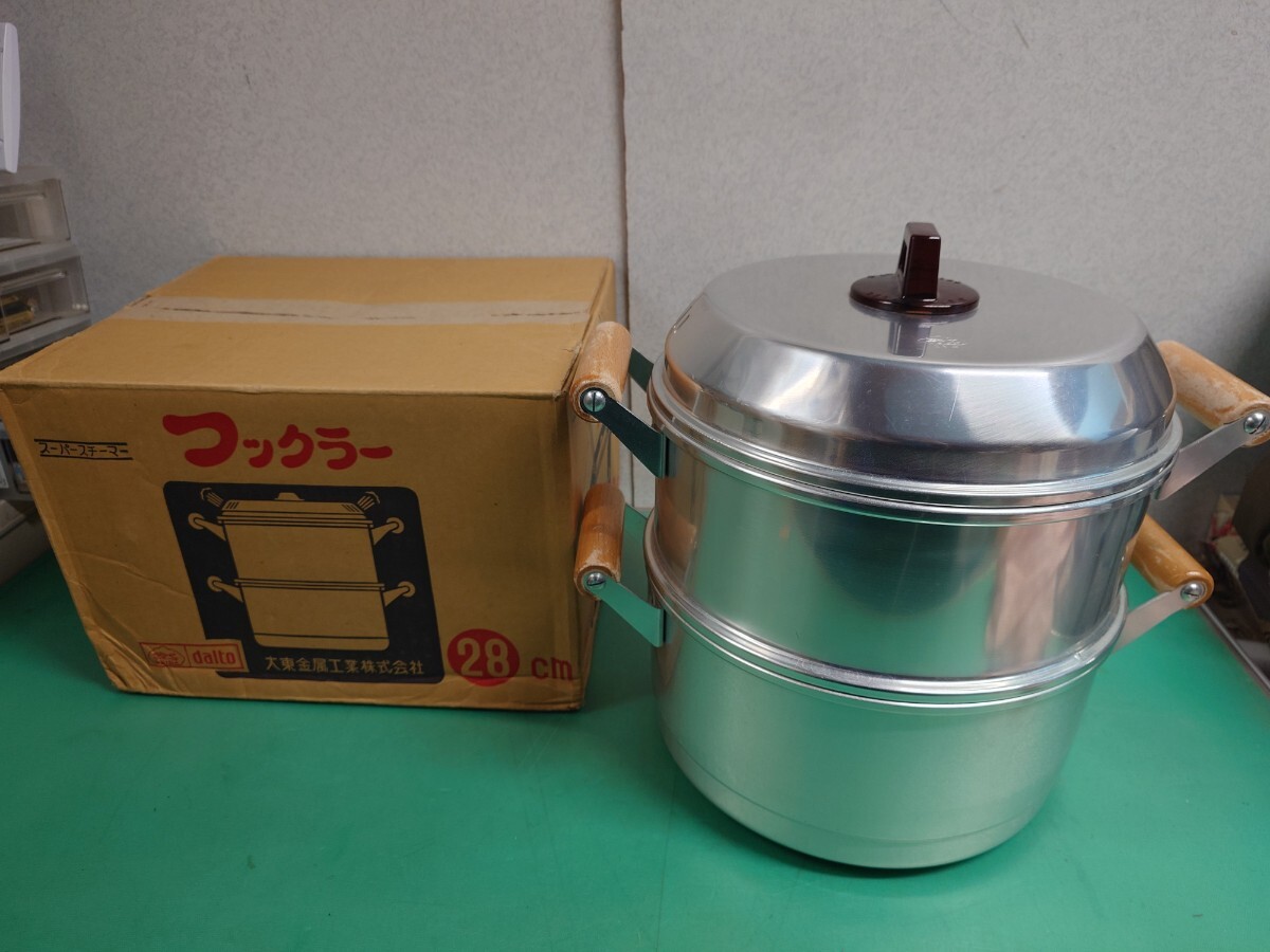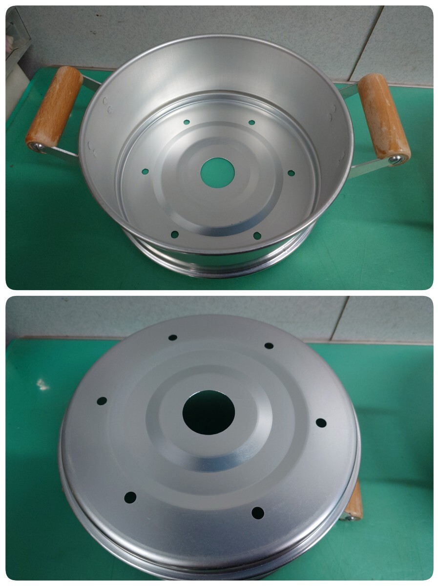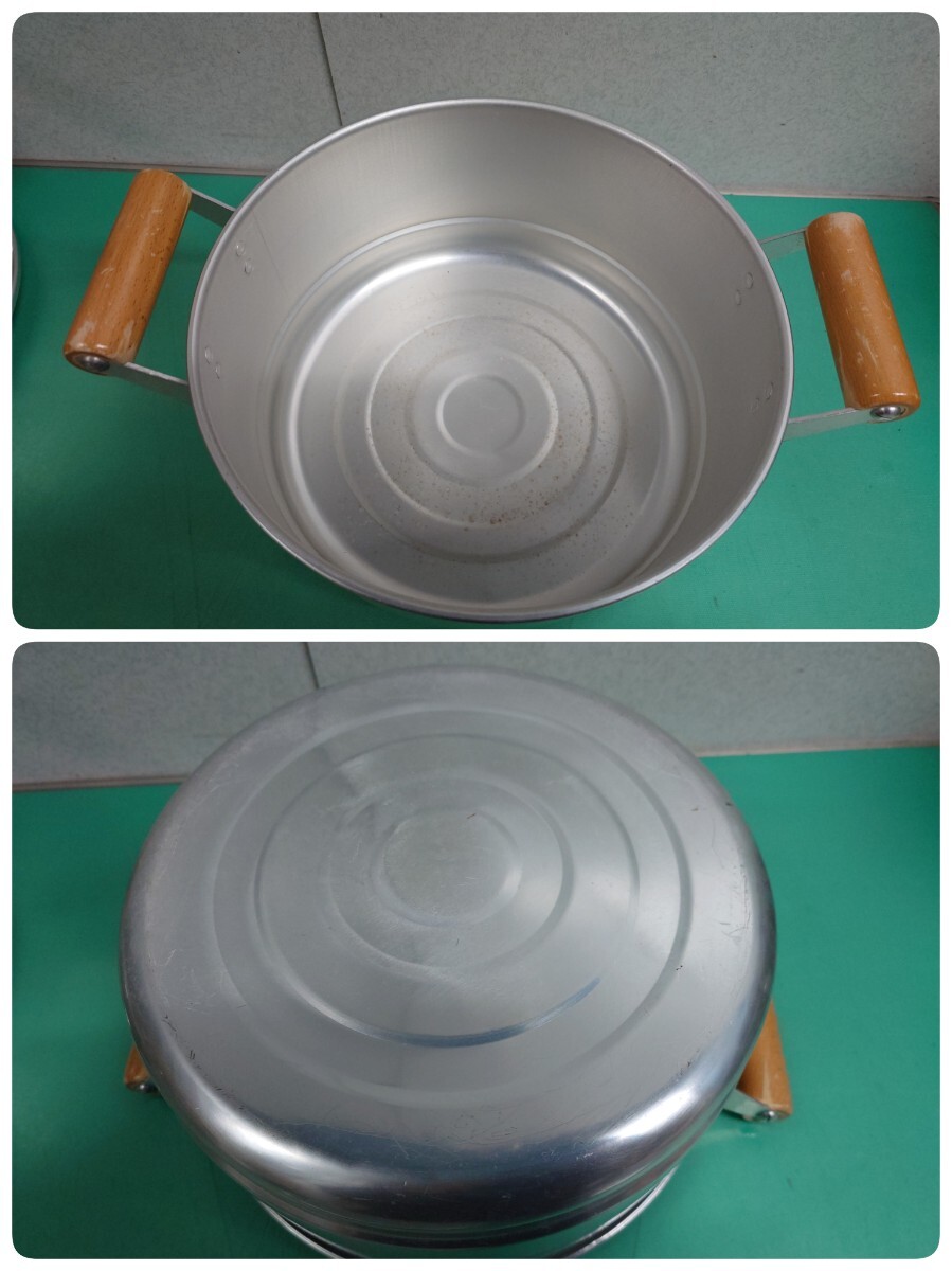 ● 大東金属 スーパースチーマー フックラー 開閉式 特殊 蓋 アルミ製 2段 蒸し器 せいろ 28cm 蒸し鍋 持ち手 木製 調理器具 ヘルシー レトロ 中古 ④