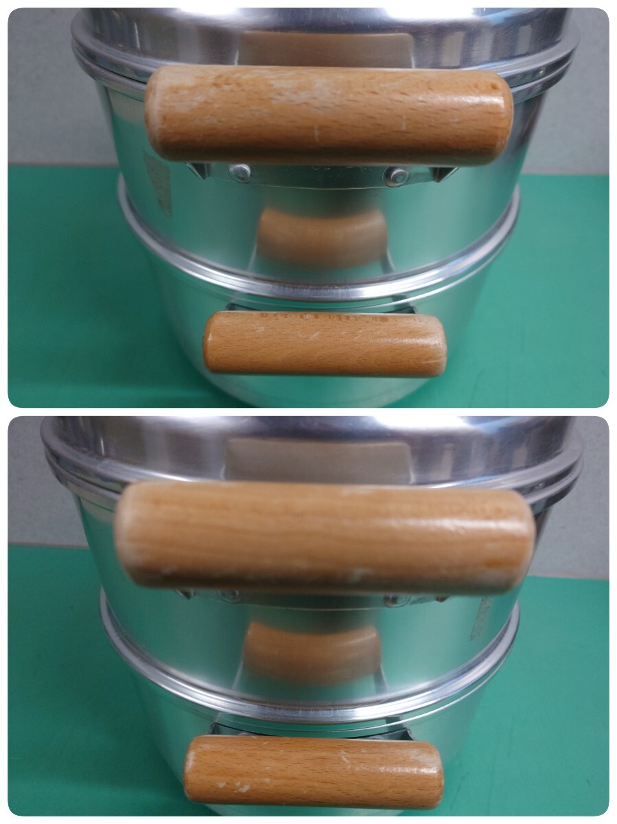 ●大東金属 スーパースチーマー フックラー 開閉式 特殊 蓋 アルミ製 2段 蒸し器 せいろ 28cm 蒸し鍋 持ち手 木製 ヘルシー レトロ 中古④