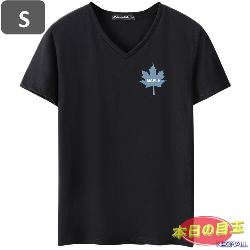 本日のお買得 ☆ Vネック 半袖 Tシャツ【455】 ブラック Sサイズ トップス シャツ シンプル イラスト デザイン 春夏