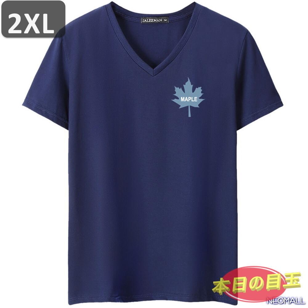 本日のお買得 ☆ Vネック 半袖 Tシャツ【455】 ネイビー 2XLサイズ トップス シャツ シンプル イラスト デザイン 春夏