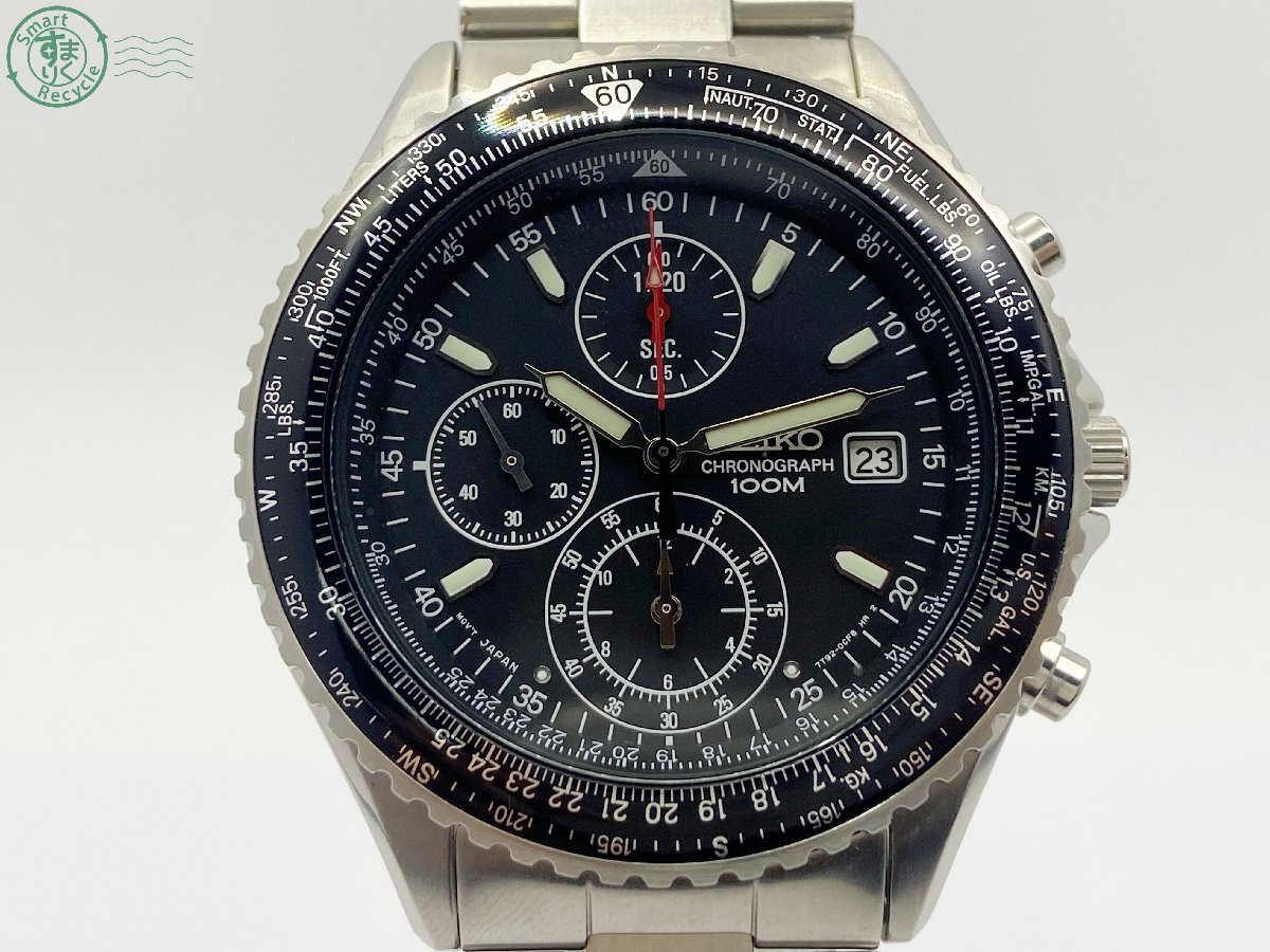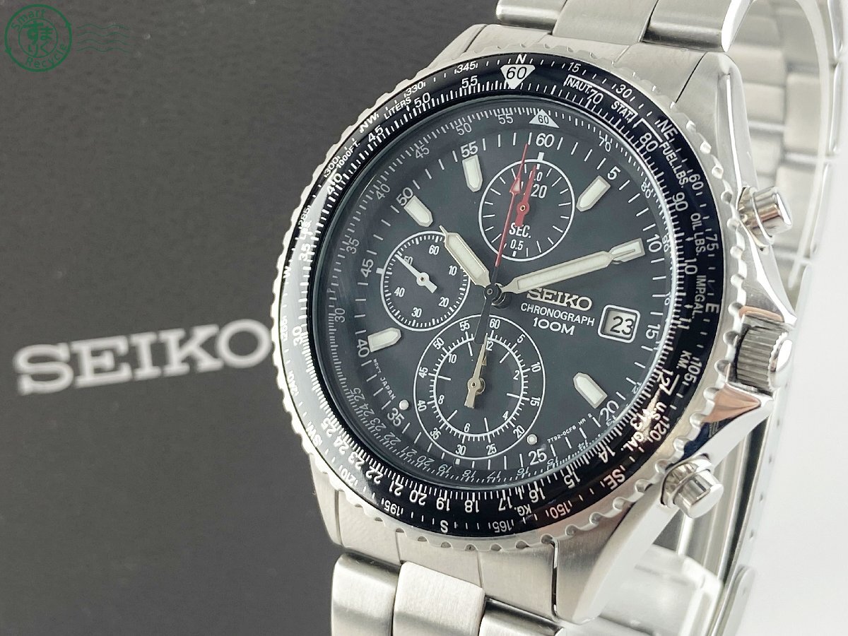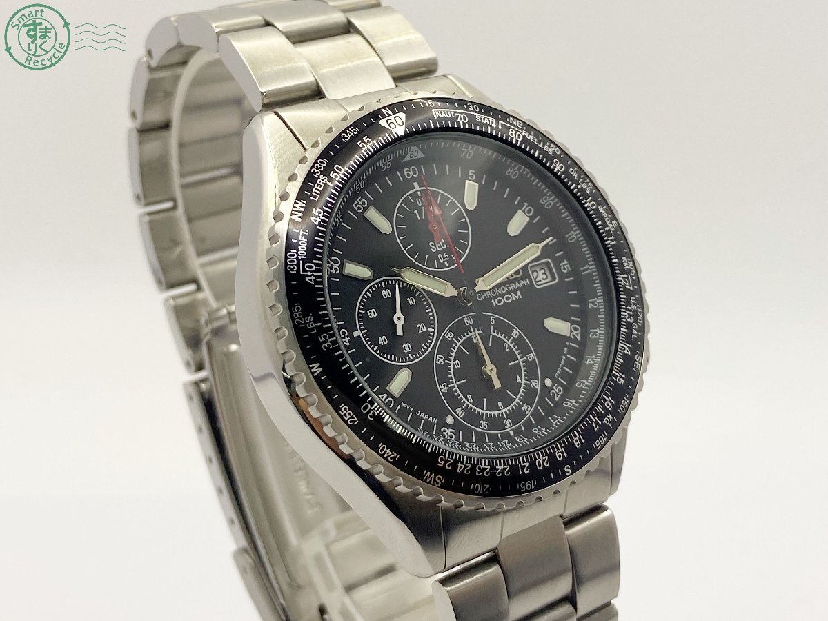 ◇ 1円~! SEIKO セイコー 7T92-0CF0 クロノグラフ 100m クォーツ ブラック文字盤 デイト アナログ 保存箱付 腕時計 中古 | |||