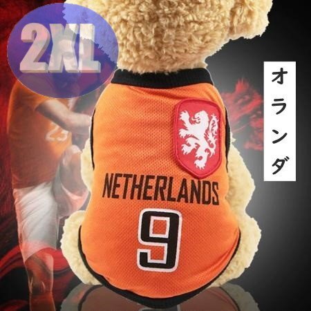 ドッグウェア 春夏 オランダ 2XLサイズ サッカー 代表 ユニフォーム 犬服 中型犬 袖なし 通気性 柔らか 洋服 可愛い