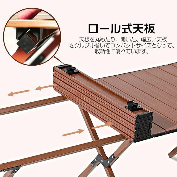 ★高品質★折りたたみテーブル ロールトップテーブル キャンプテーブル 簡単組立 収納バッグ付 軽量コンパクト (ブラック)