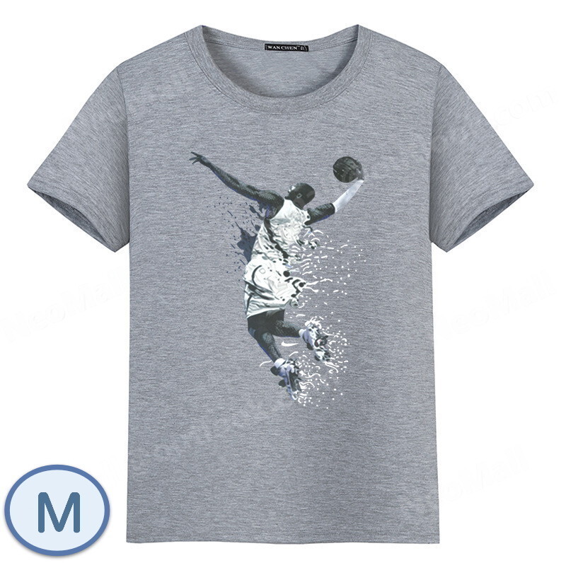 夏にピッタリ ☆ 丸首 半袖 Tシャツ【069】 グレー Mサイズ トップス シャツ シンプル イラスト プリント 春夏