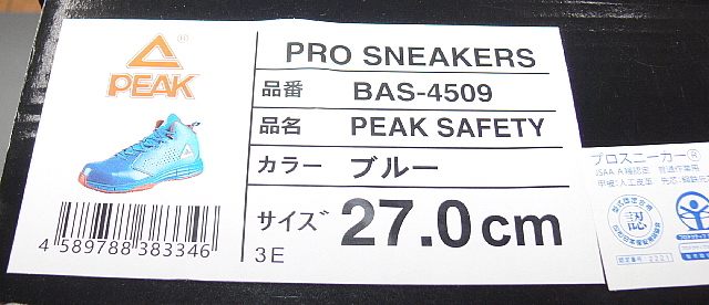 PEAK ピーク安全靴 PRO SNEAKERS BAS-4509 PEAK SAFETYブルー サイズ27㎝ 未使用品格安です。