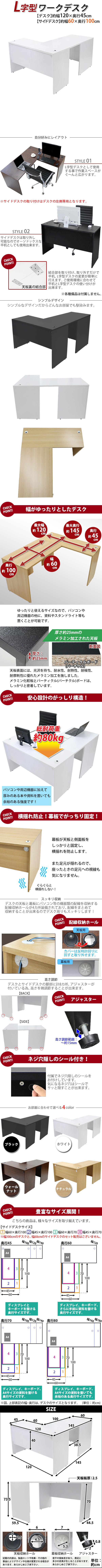 | 商品紹介 | ■作業スペースを広く確保出来る、L字型ワークデスクです。 ■サイドデスクの幅が約60cmのタイプです。 ■会議室や事務所等、オフィス家具として様々なシーンでお使いいただけます。 ■天板には、メラミン加工を施しています。 ■幕板が天板と側面板をがっちりと固定!横揺れを防止します。 ■ネジ穴隠しのシール付き。 ■デスクの天板と幕板に配線収納ホールが2カ所ずつ備わっています。 ■アジャスターで高さの調節が可能です。(高さ調節範囲〜約15mm) ※こちらの商品は、組立て式です。組立てにはプラスドライバーが必要です。お客様でご用意ください。 ※組立図が付属します。 ※サイドデスクの取り付けはデスクの左側専用となります。 ■材質:パーティクル(パーチクル)ボード(メラミン加工)(本体、サイドデスク)、プラスチック(アジャスター、配線収納ホール) ■重量:約44kg(デスク:約23kg、サイドデスク:約21kg) ■総耐荷重:約80kg ●新品商品ではありますが、輸入商品の為、多少の擦り傷などがある場合がございますので、ご納得の上ご購入下さいませ。 ●ご購入後、お客様ご都合によるご返品、ご返金等は一切お受け致しておりません。 ●本商品を使用した際に発生したトラブル、事故につきまして、当社は一切の責任を負いません。ご使用に関しましては、全て自己責任にてお願い致します。 ※カラーはホワイトとなります。 |