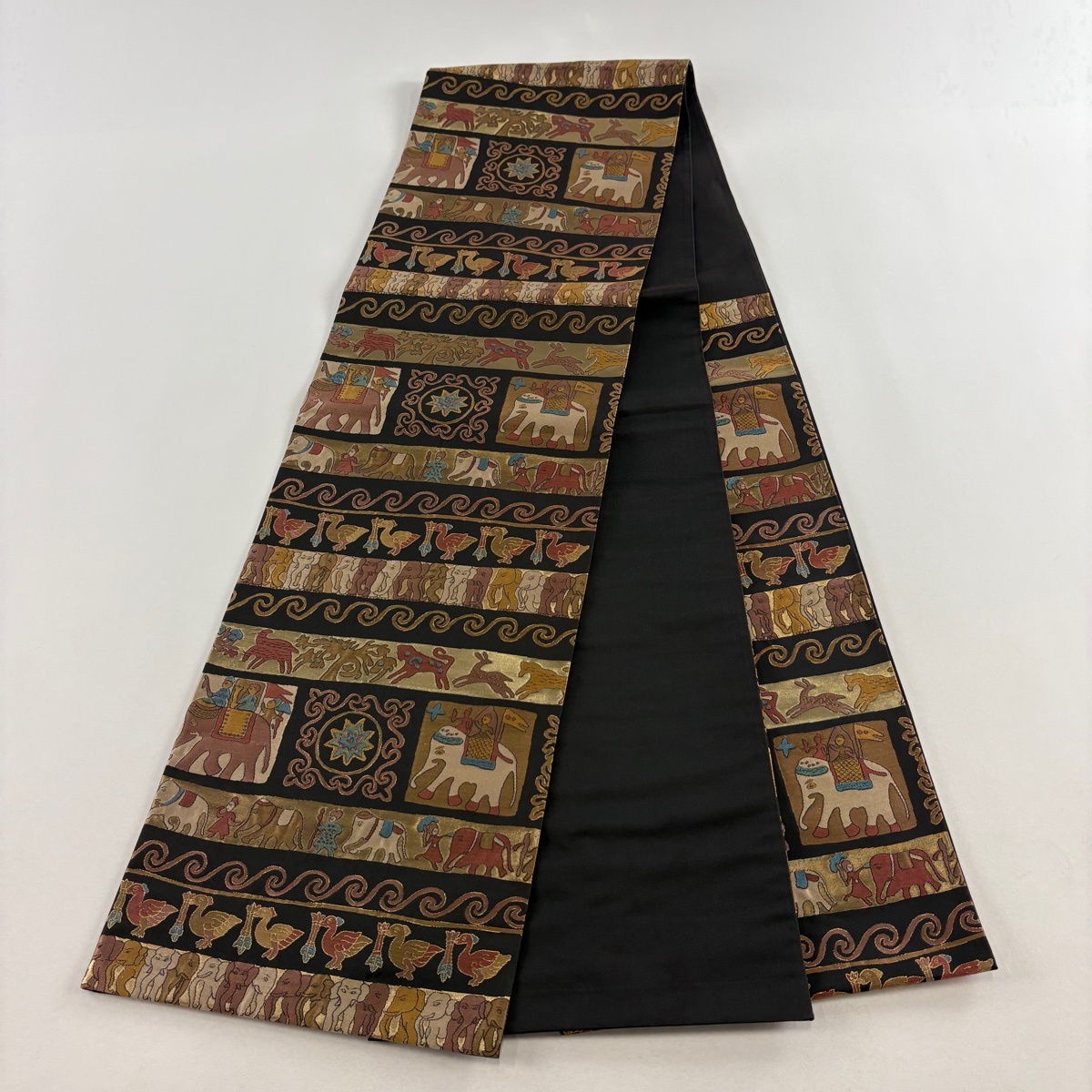 | 袋帯 美品 名品 動物 人物 箔 黒 六通 正絹 【中古】 |