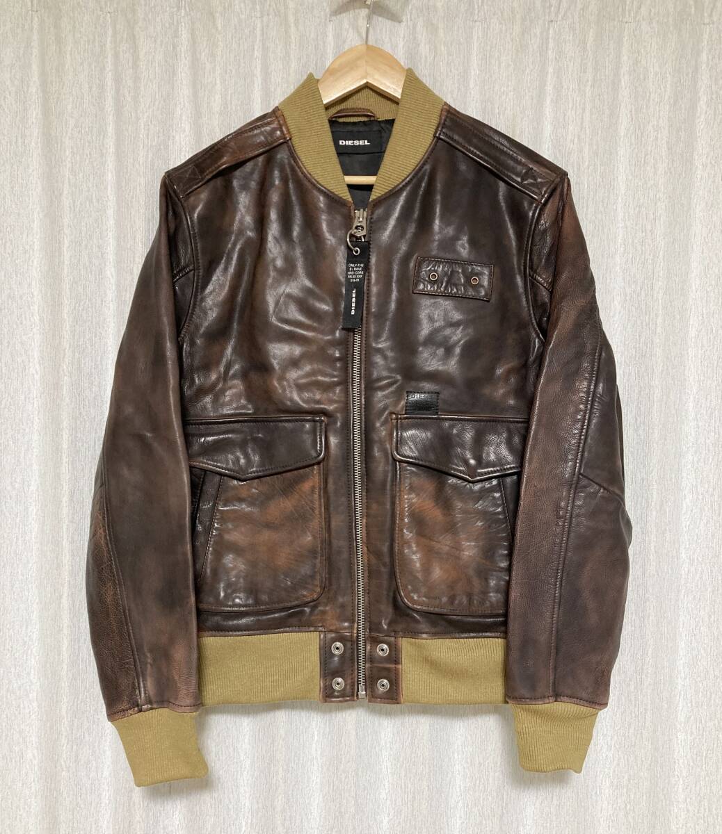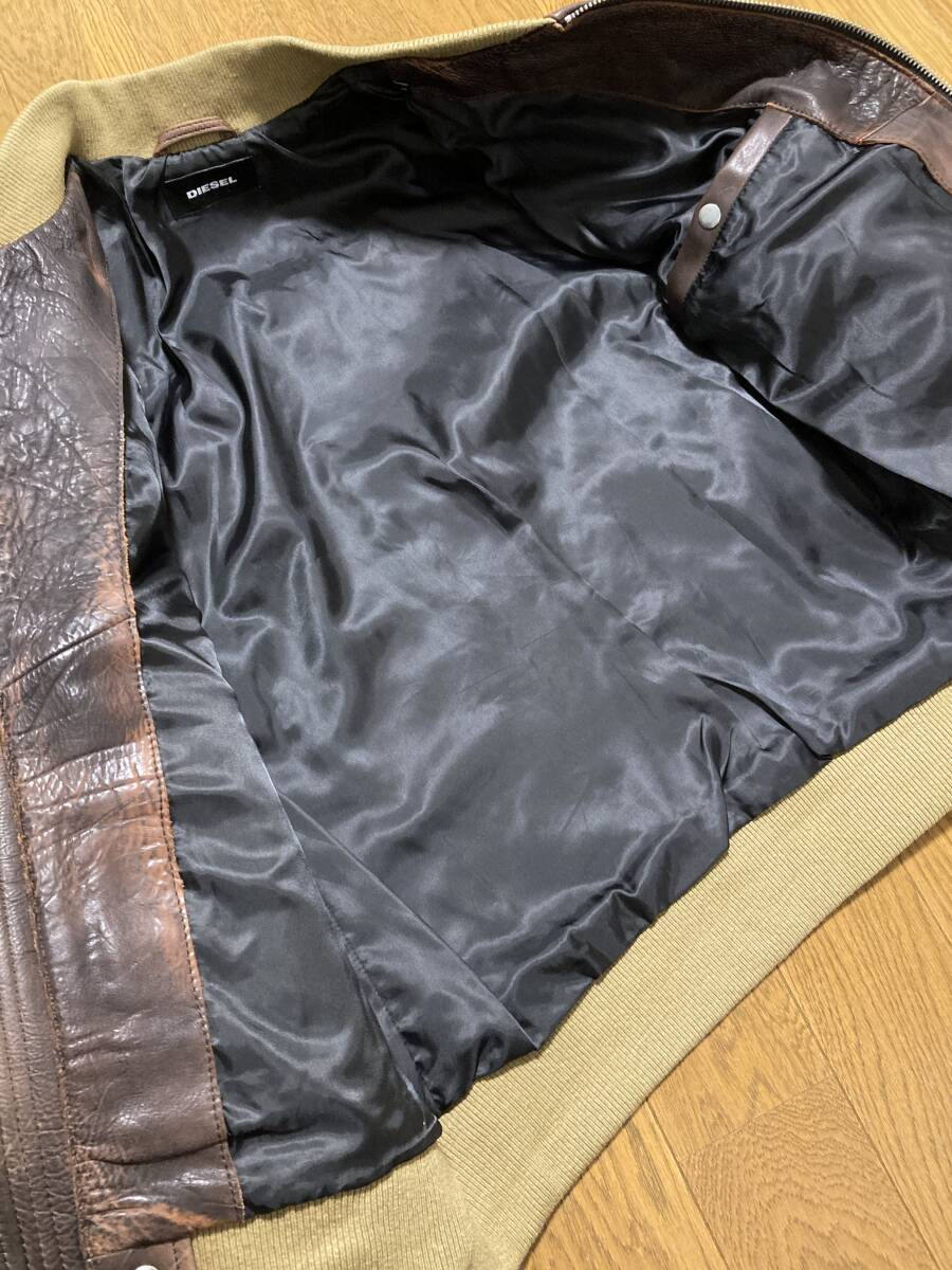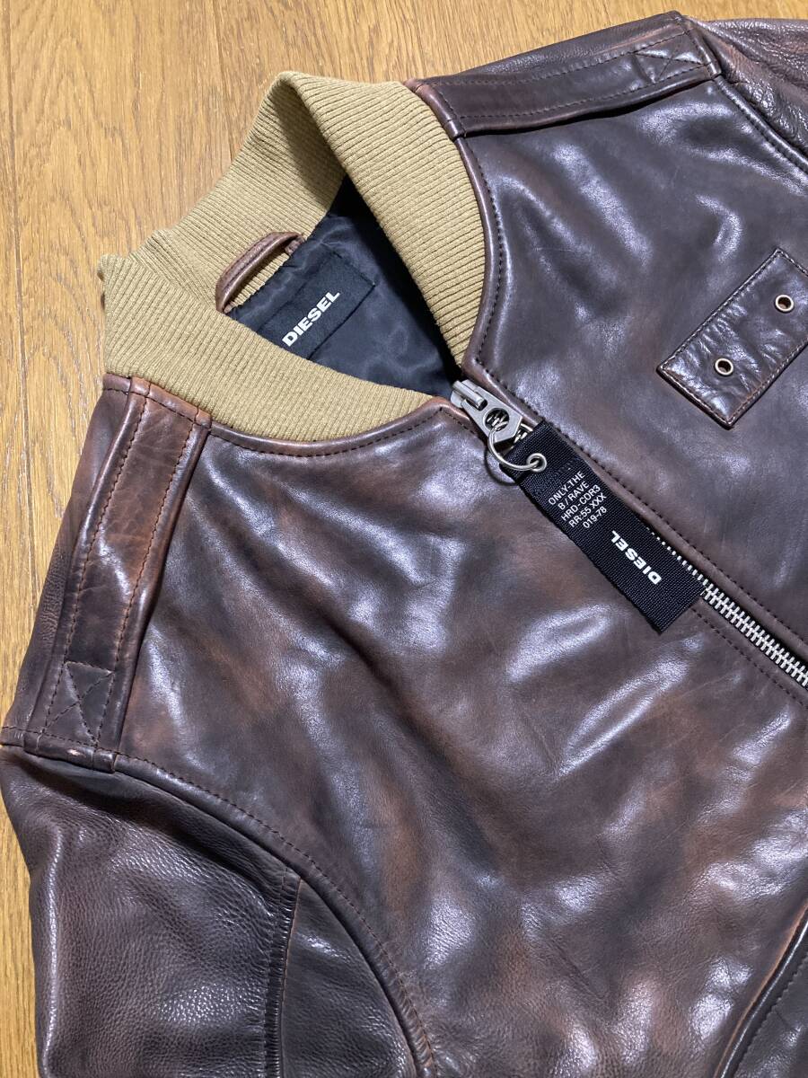 美品☆[DIESEL] 定価115,500 L-OIUKI ヴィンテージ加工 フライトレザージャケット ライダース L 牛革 ブラウン ディーゼル