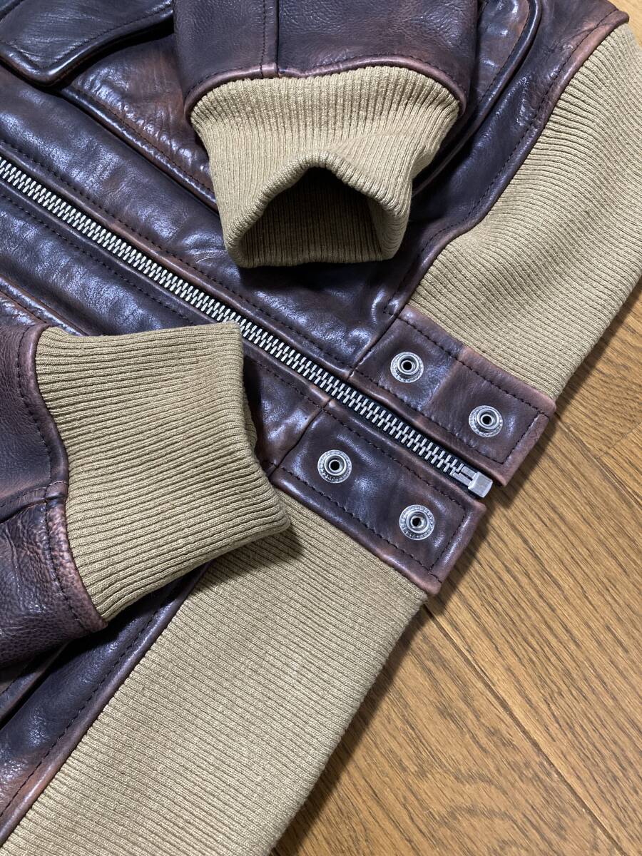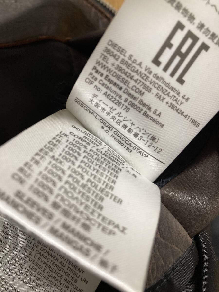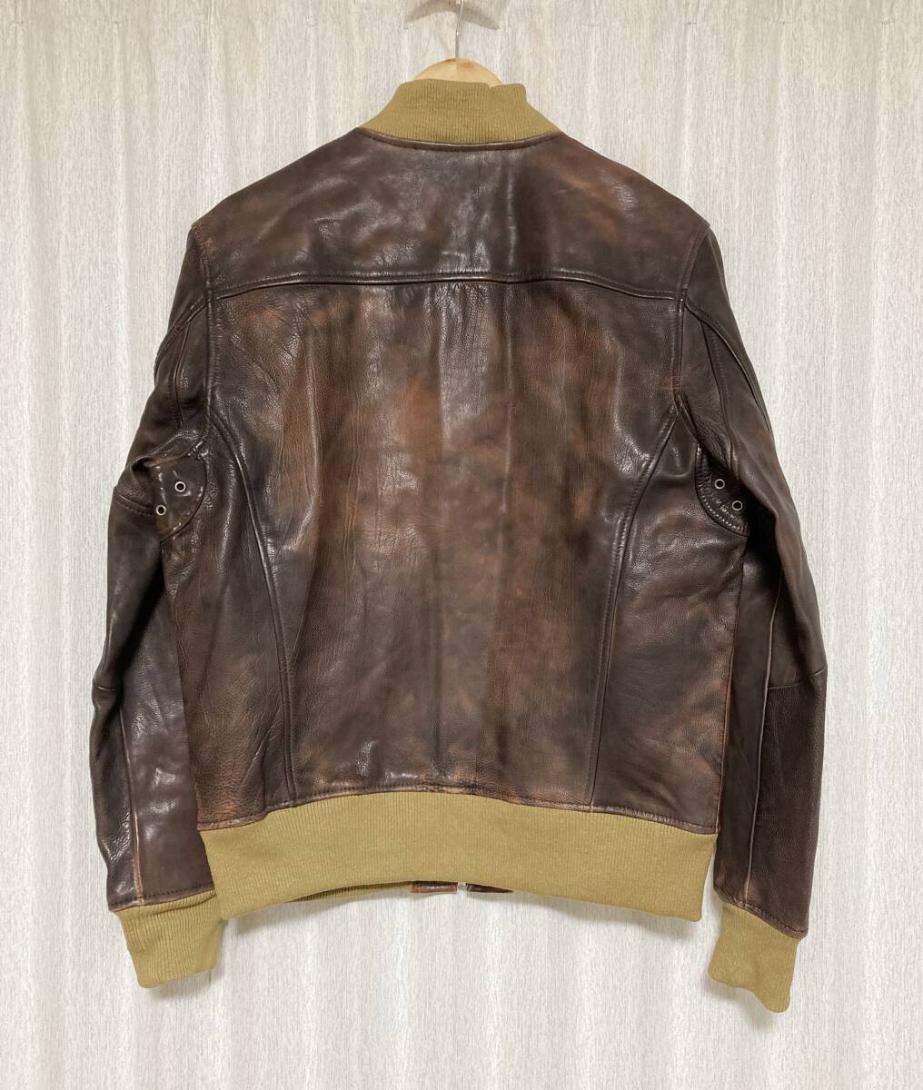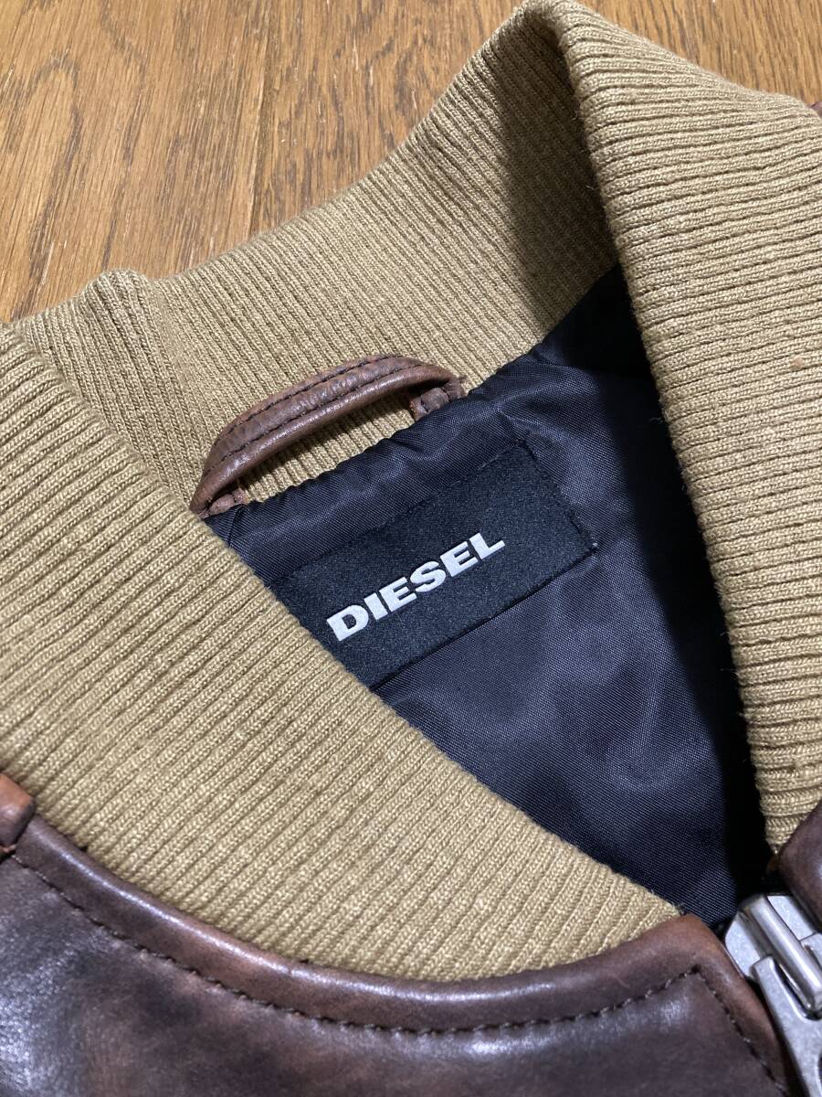美品☆[DIESEL] 定価115,500 L-OIUKI ヴィンテージ加工 フライトレザージャケット ライダース L 牛革 ブラウン ディーゼル