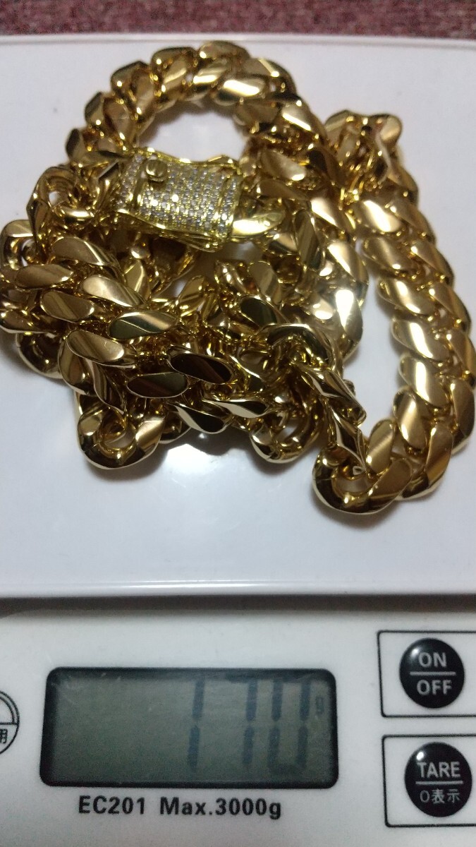 極太の喜平、18kのメンズ/レディース用ゴールドネックレスです。重さは、170gもあります。