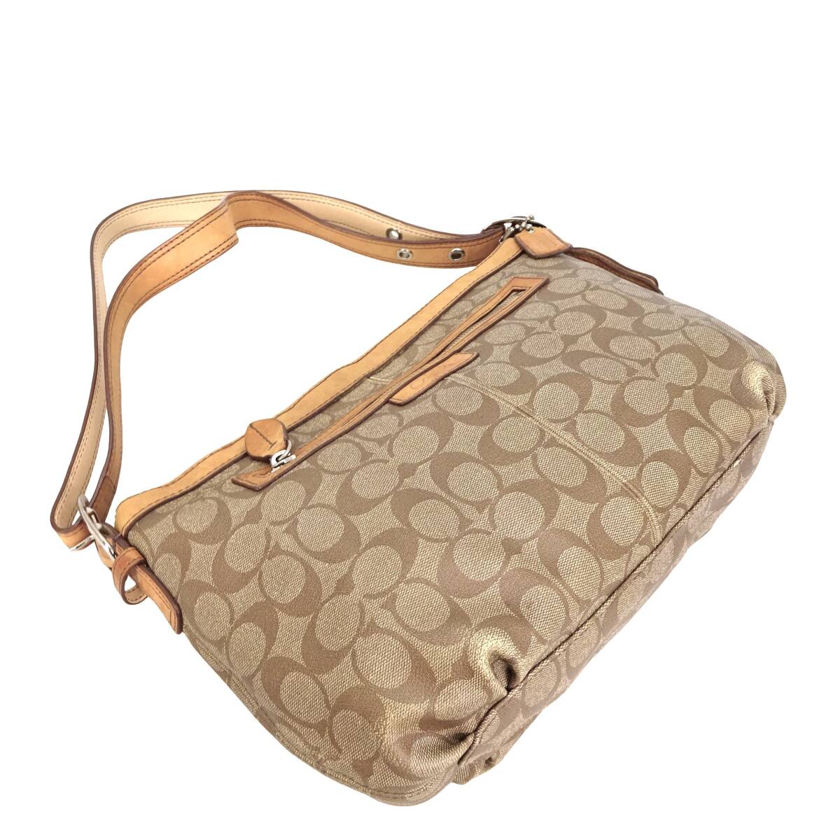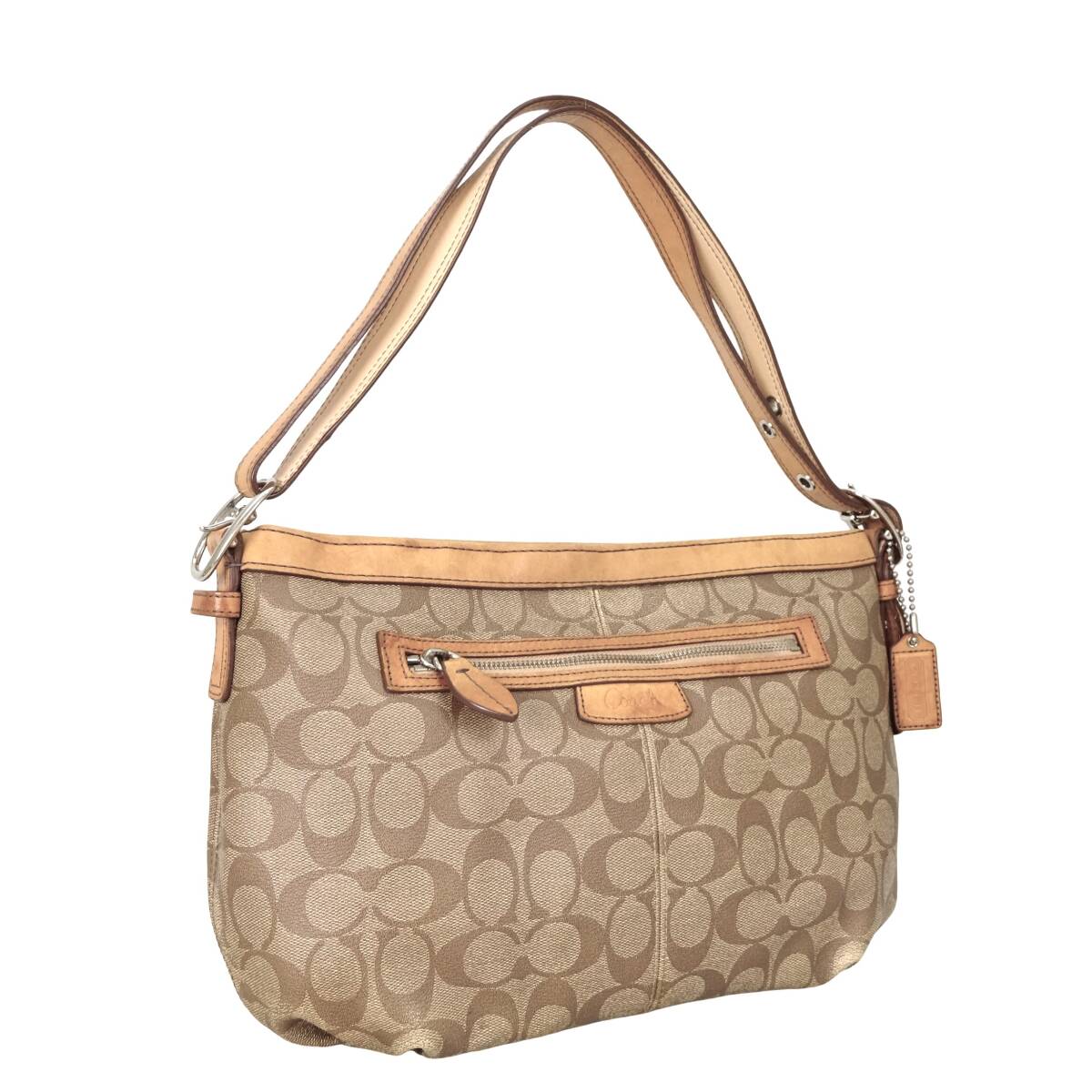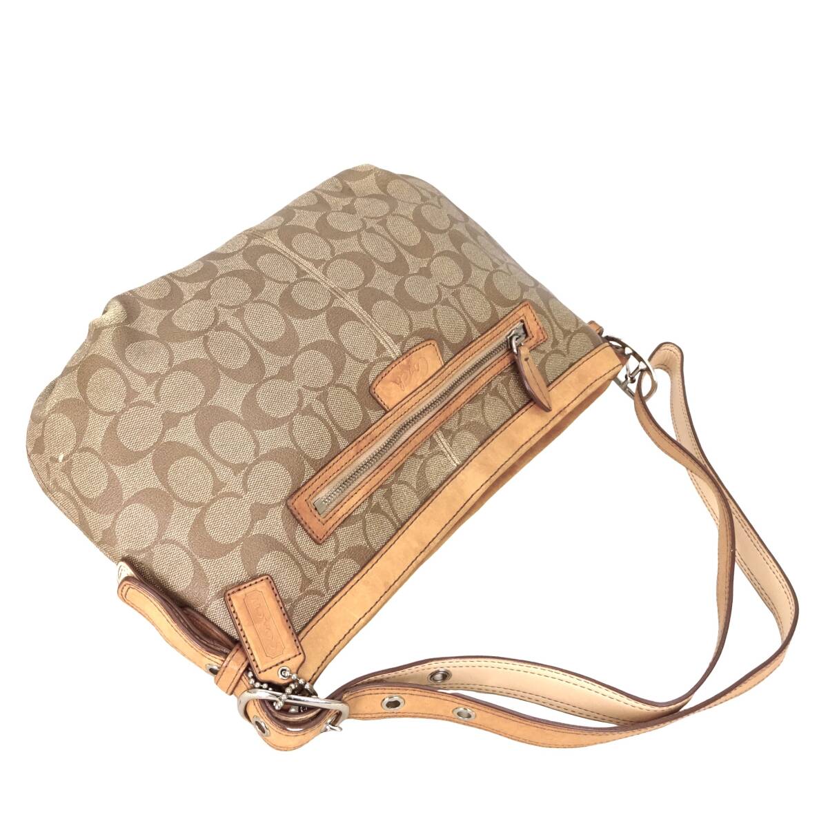 本物■コーチ■ペネロピ シグネチャー ダッフル ベージュ シルバー ショルダーバッグ ハンドバッグ /743502