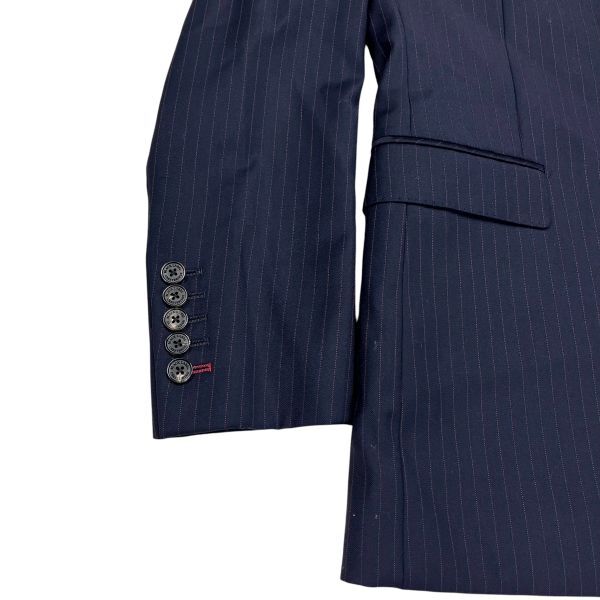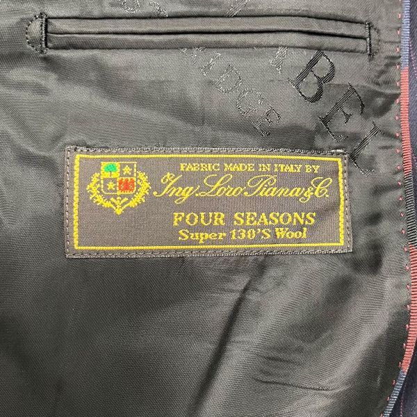 スーツ 赤ラインストライプ 2つボタン シングル 総裏 ロロ・ピアーナ Super 130'S