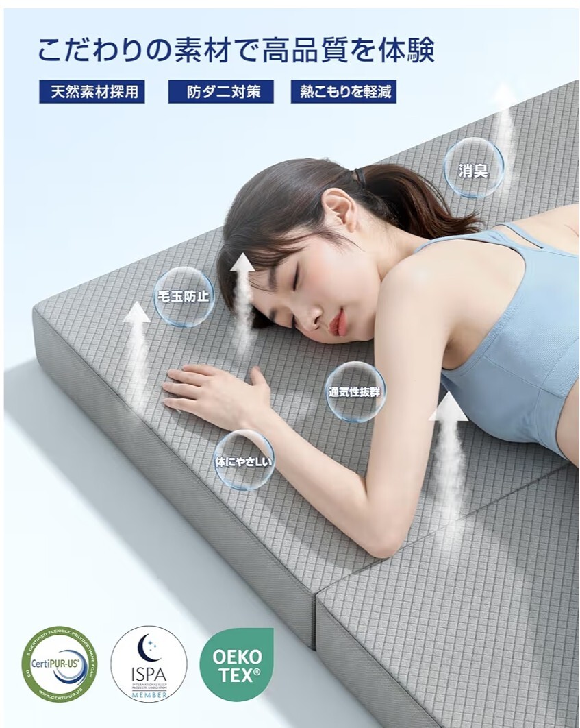 天然素材採用で防ダニ・抗菌・防臭・ 通気性で安心して毎日ぐっすり寝れる最高のマットレス♪