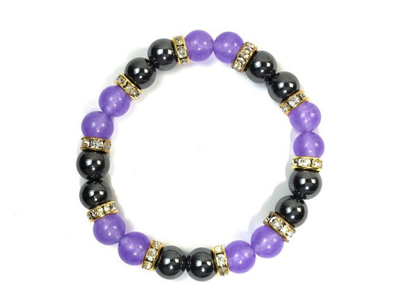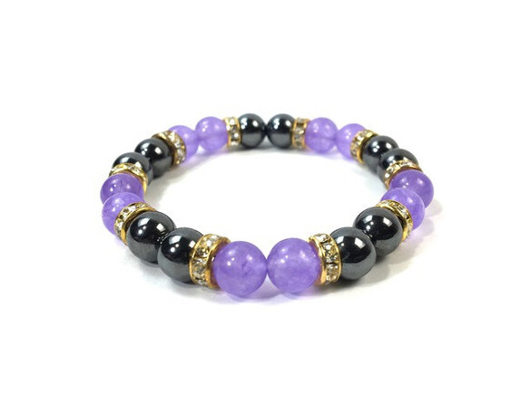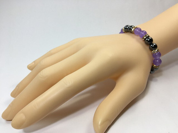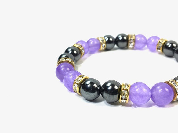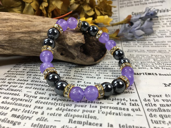 ジェイド(パープル)×ヘマタイト パワーストーン ブレスレット(ゴールド)レディース 女性 開運 数珠 お守りプレゼント ギフト