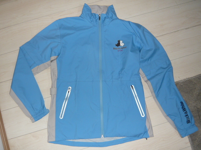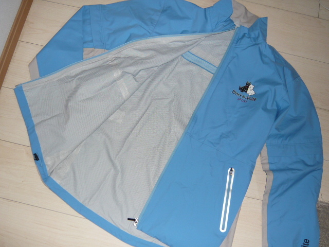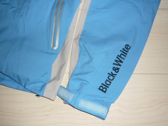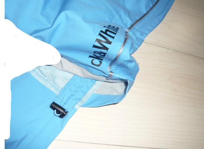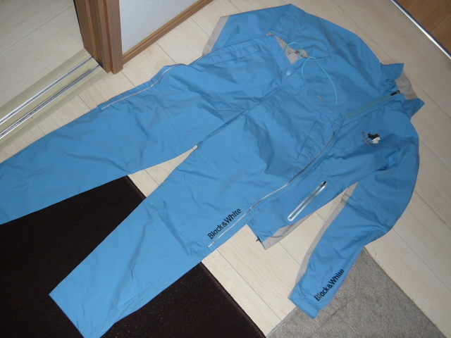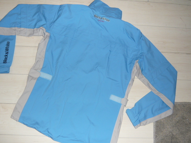 ブラック&ホワイト Lサイズ レインウェア セットアップ上下セット 鮮やかなブルー 美品 ナイロンPUコーティング 2WAY半袖になる