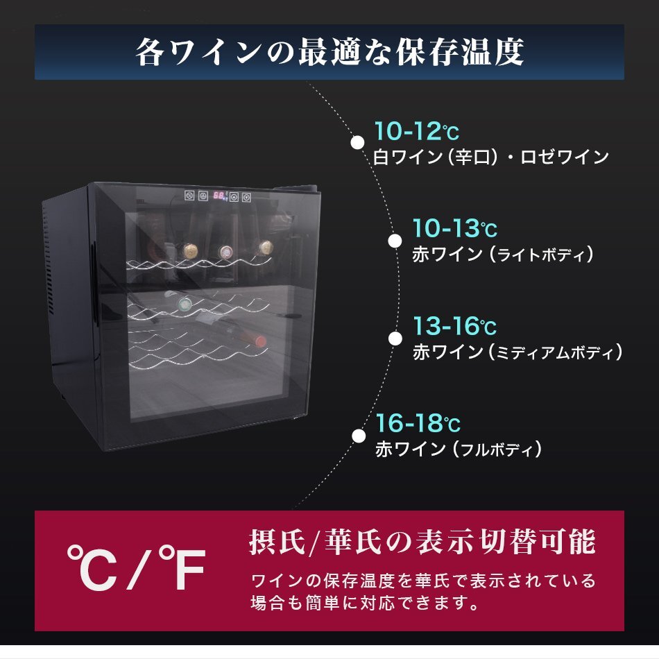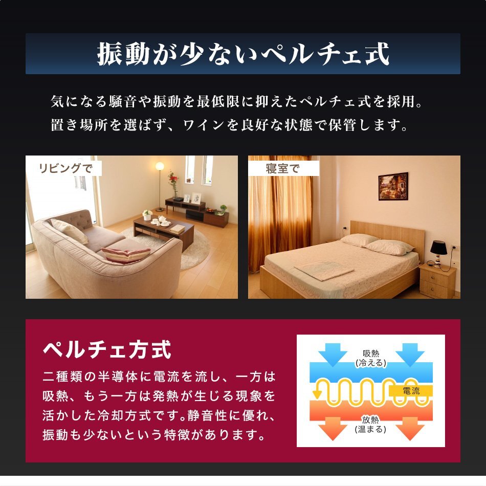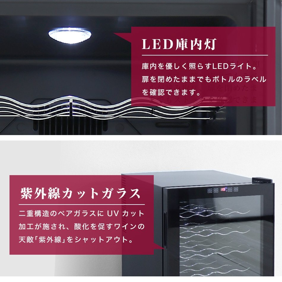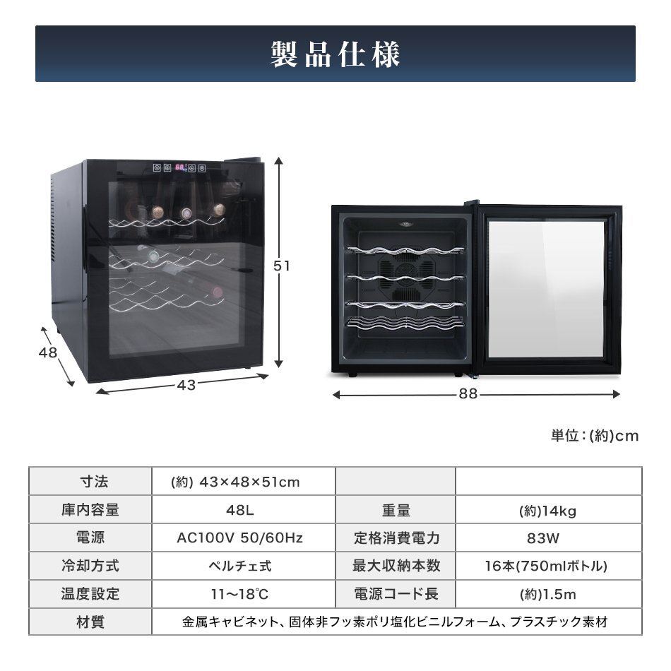 | ワインをご家庭で簡単に保存できる48Lワインセラーです。 置き場所に困らないコンパクト設計なので、どこでも大活躍です。 赤ワイン・白ワインいずれも冷却可能。 ワイン棚は取り外し可能なので、各種サイズのワインが対応できます。 ワインにも環境にも優しいペルチェ冷却方式! ペルチェ式は電流の方向や量で冷却・加熱の大小が設定でき、振動や音もなく温度を変化させることができる方式です。 温度はディスプレイに表示され、設定も簡単! 庫内にライトが付くので、ラベル確認も可能です。 高級感溢れるデザインがお部屋のインテリアをオシャレにします! 【商品詳細】 サイズ:(約)幅43×奥行48×高さ51cm 重量:(約)14kg 収納本数:最大16本(棚4枚使用の場合) 設定温度:11℃~18℃ 冷却方式:ペルチェ式 定格内容積:48L 消費電力:83W 素材:金属キャビネット 他 保証期間:1年 ※ワインセラーの設置場所は温度変化の少ない場所へ設置してください。 ※基本的なセラー機能として問題はございませんが、高級なワインなど熟成を目的とした長期保存には向いておりません。 ※庫内温度の上昇によりワインに変質があっても保証致しかねます。庫内温度には充分ご注意ください。 |