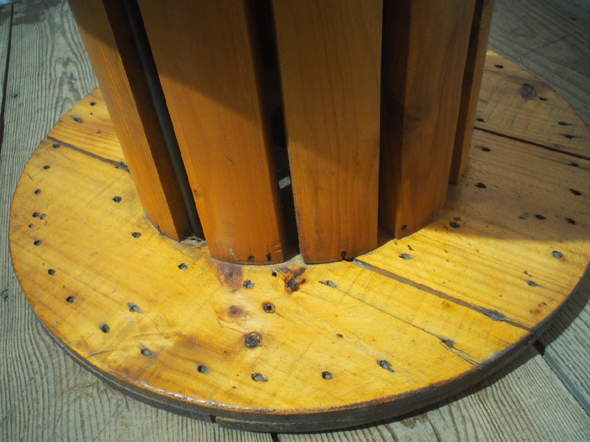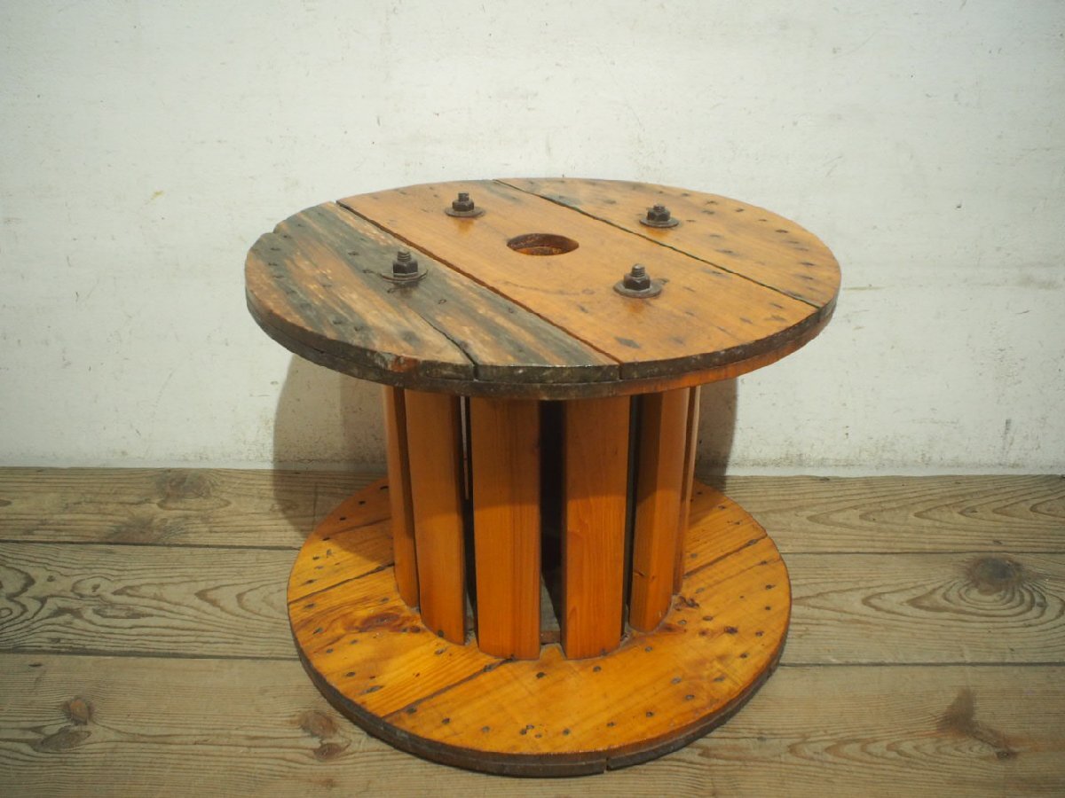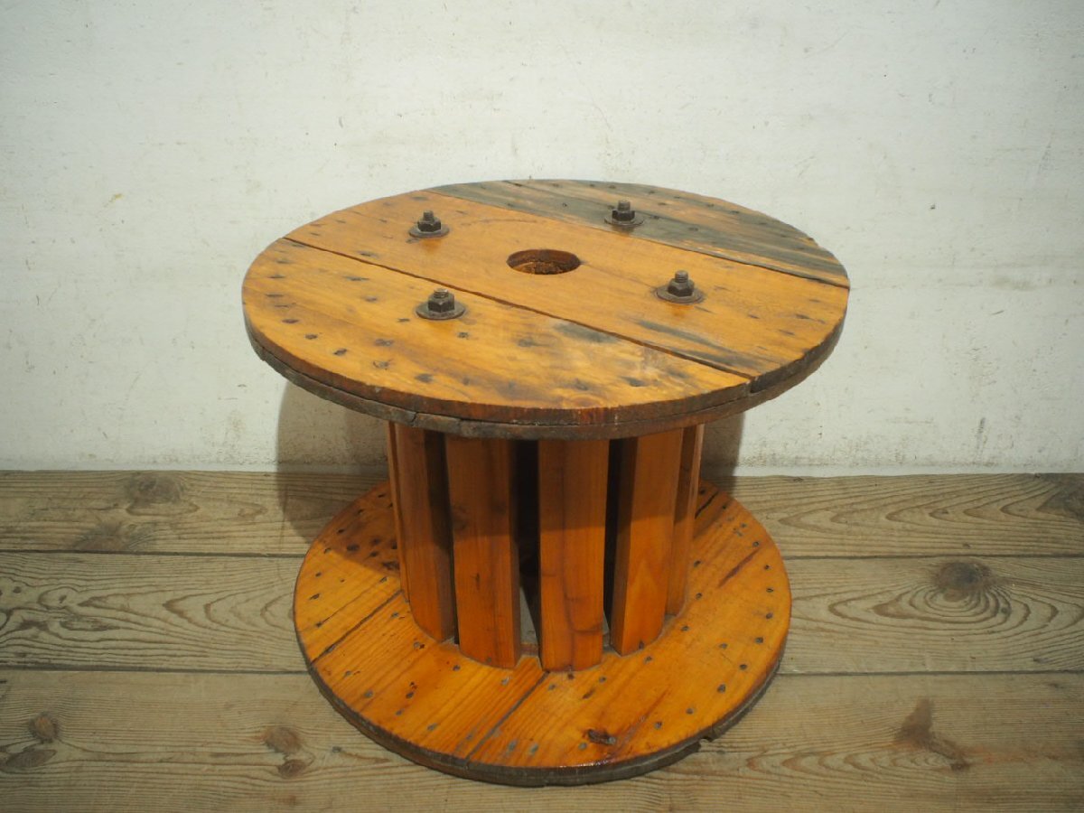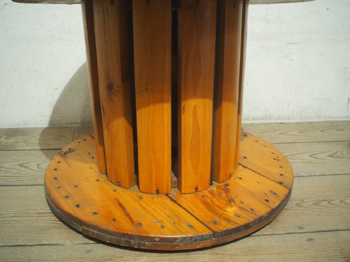 タJ0977◆②直径55cm◆ヴィンテージ◆レトロなドラムの古い木製センターテーブル◆工業系 陳列台 ガーデン コーヒー カフェ 店舗什器K笹4