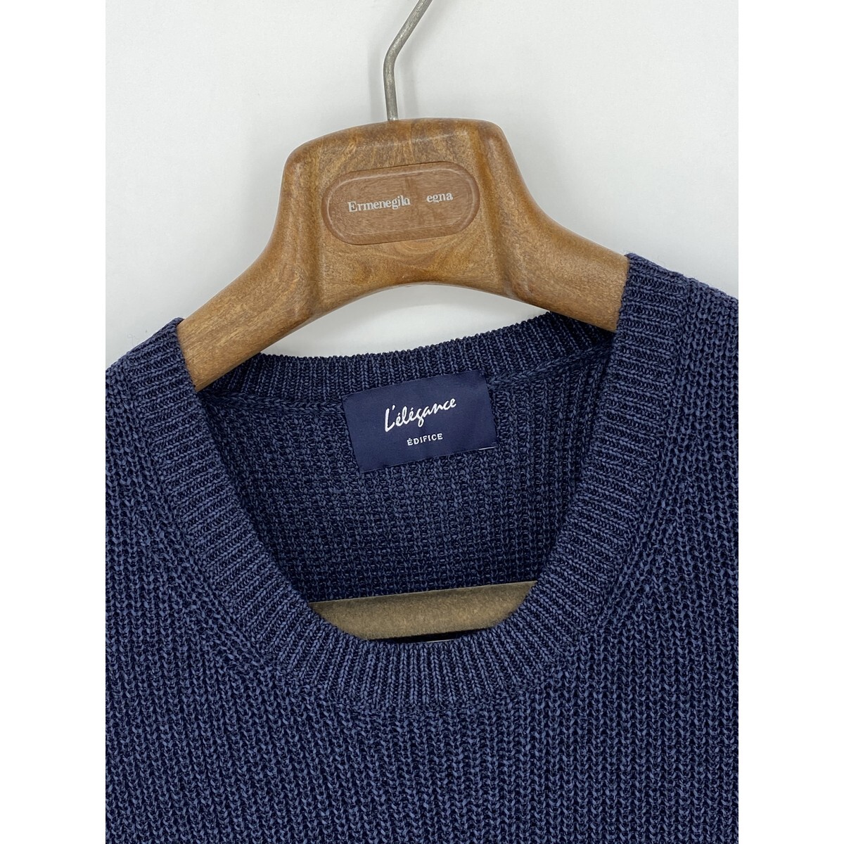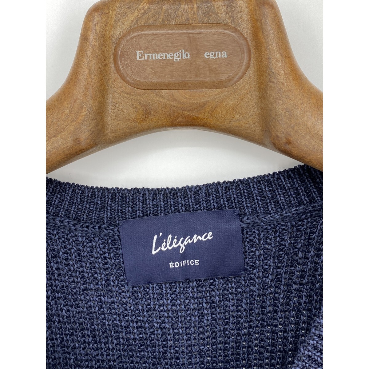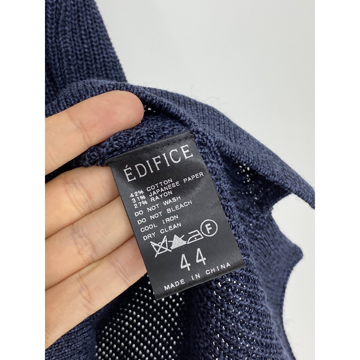 B0627/極美品 EDIFICE エディフィス Lelegance コットン 和紙 クルーネック ローゲージ ベスト ジレ ニット セーター 44 M 紺 青 メンズ